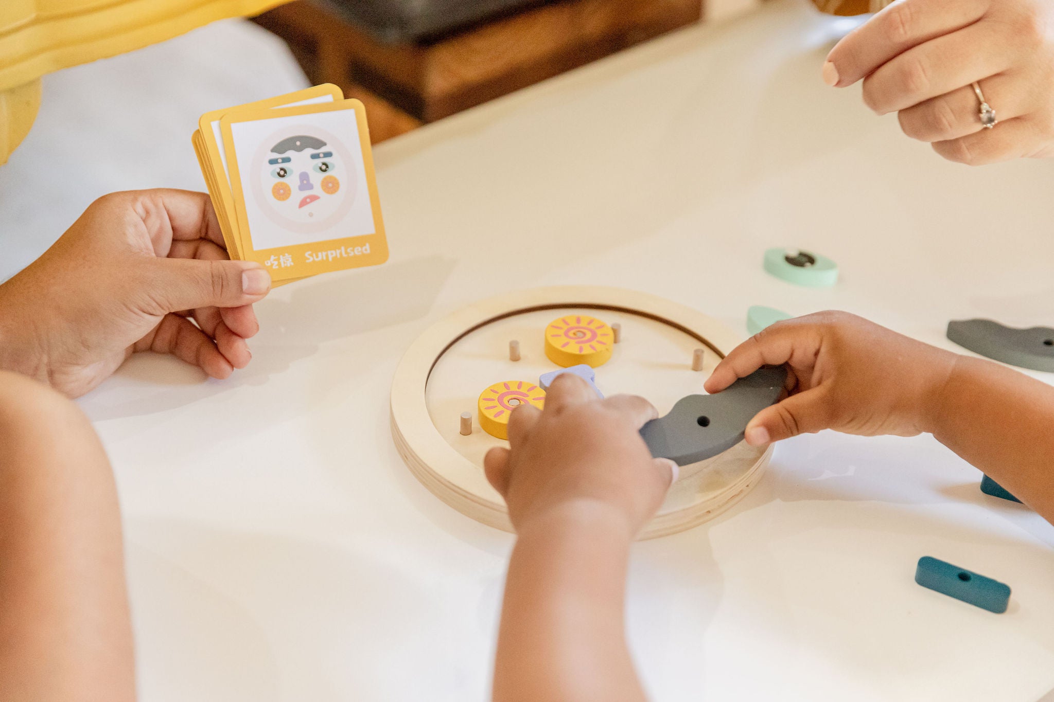 Ding Ding Ring is a hit in both therapy groups and family play. Children race to copy the card patterns with elastic bands, and the thrill of ringing the bell first keeps everyone excited and engaged.