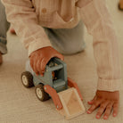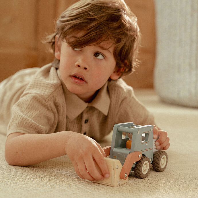 The sturdy mini bulldozer rolls smoothly thanks to the rubber wheels and comes with a wooden construction worker. Whether you play indoors or outdoors, this bulldozer provides hours of fun.