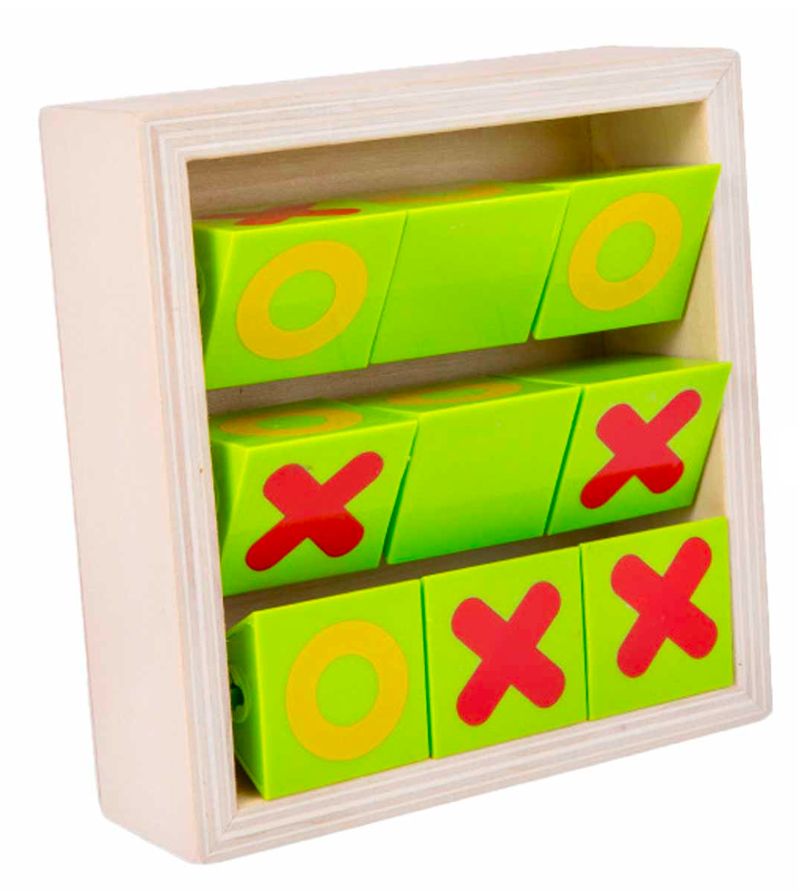 Children rotate the cubes to form winning combinations in a classic game of X and O—encouraging strategy and fun play.
