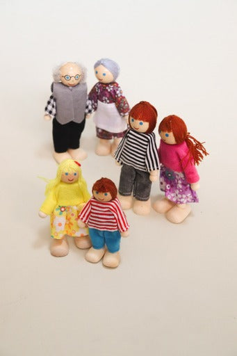 This wooden doll family set makes for the perfect addition to your child’s doll house or playing family in any imaginative setting! The six pose-able family members have flexible limbs, so children can bend their bodies and change their positions as they enjoy limitless pretend-play possibilities.