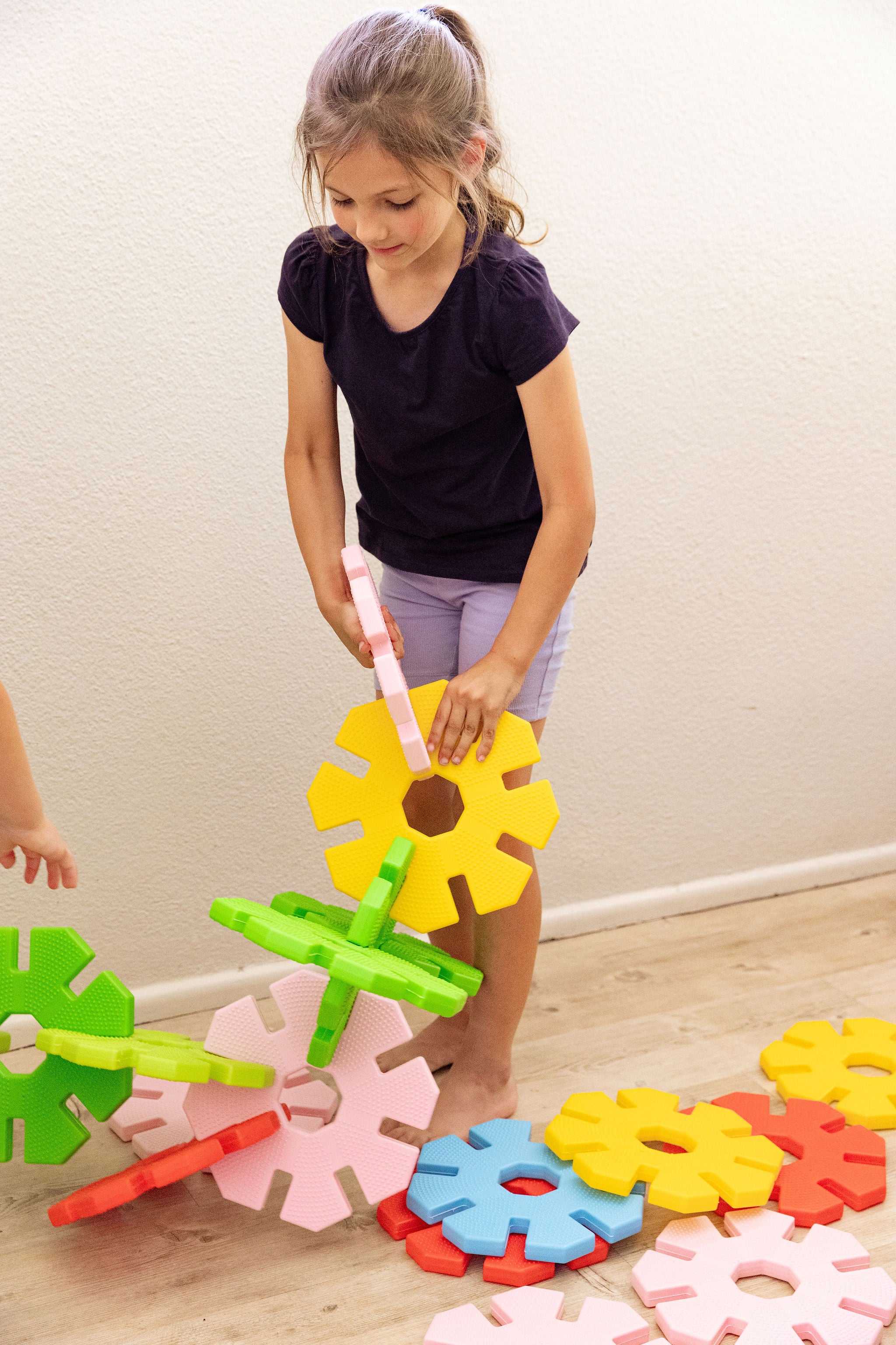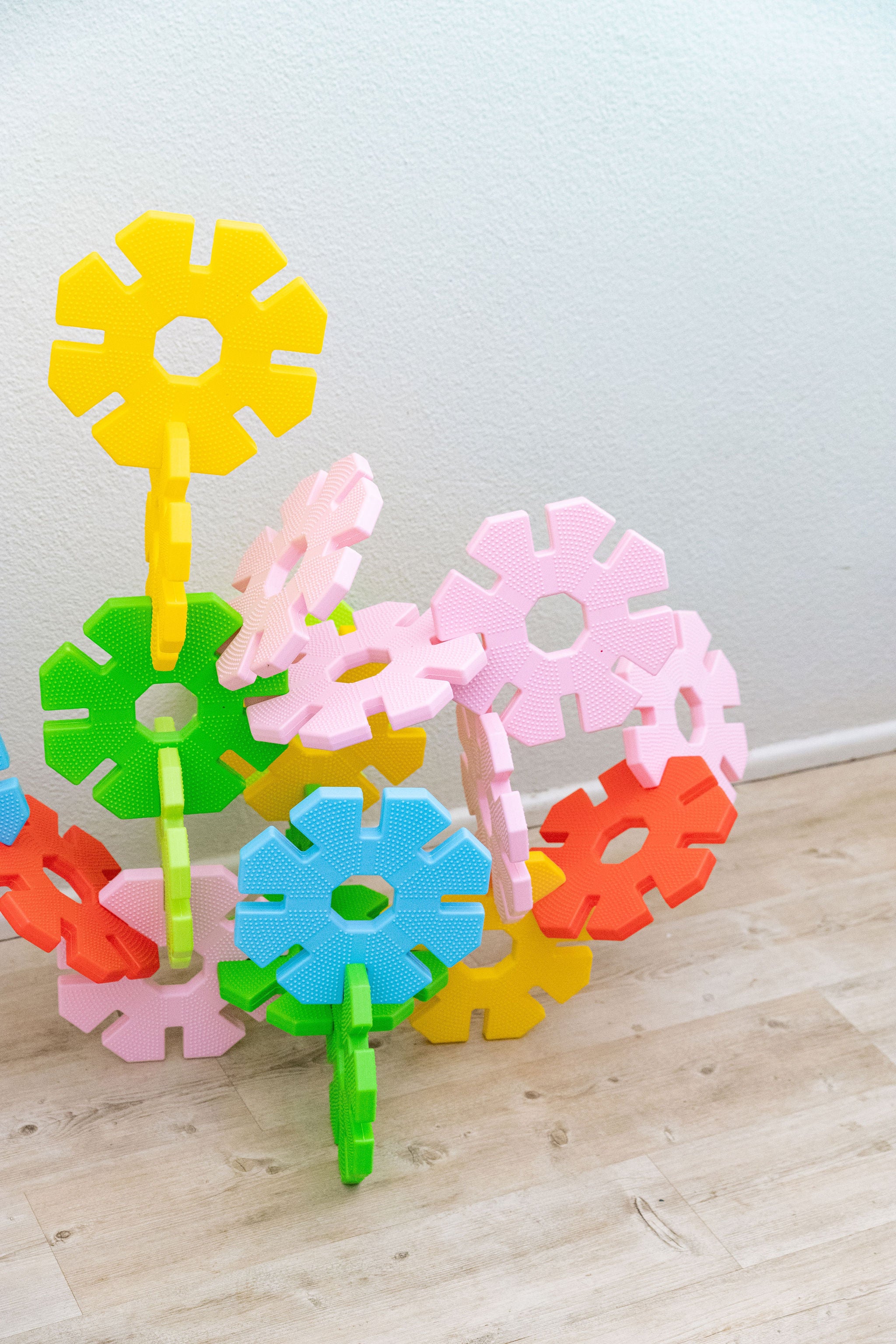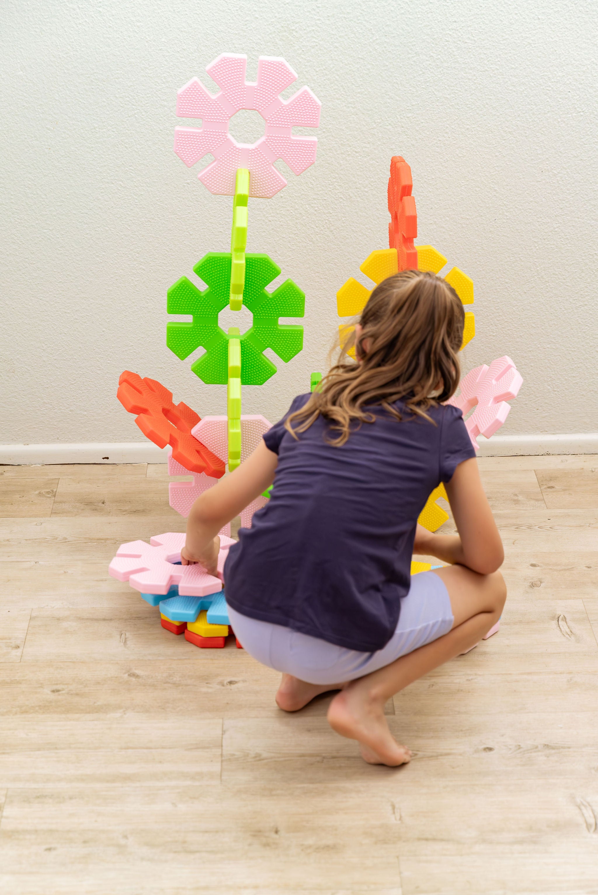 The tactile benefits of the textured surfaces enhance sensory exploration, contributing positively to the developmental journey of young minds. The simplicity of connecting the pieces not only facilitates seamless construction but also promotes fine motor skills and hand-eye coordination. Whether utilized indoors or outdoors, this expertly crafted Giant Daisies Set invites children to embark on an educational adventure where imagination, creativity, and cognitive development intertwine harmoniously.