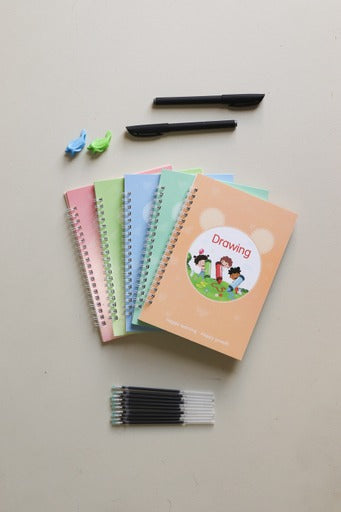Practice copybook 19x13 cm, it has a three-dimensional groove design, high-quality paper, strong and durable. It's convenient for children to reuse this copybook because the handwriting will disappear within 10 minutes of writing.