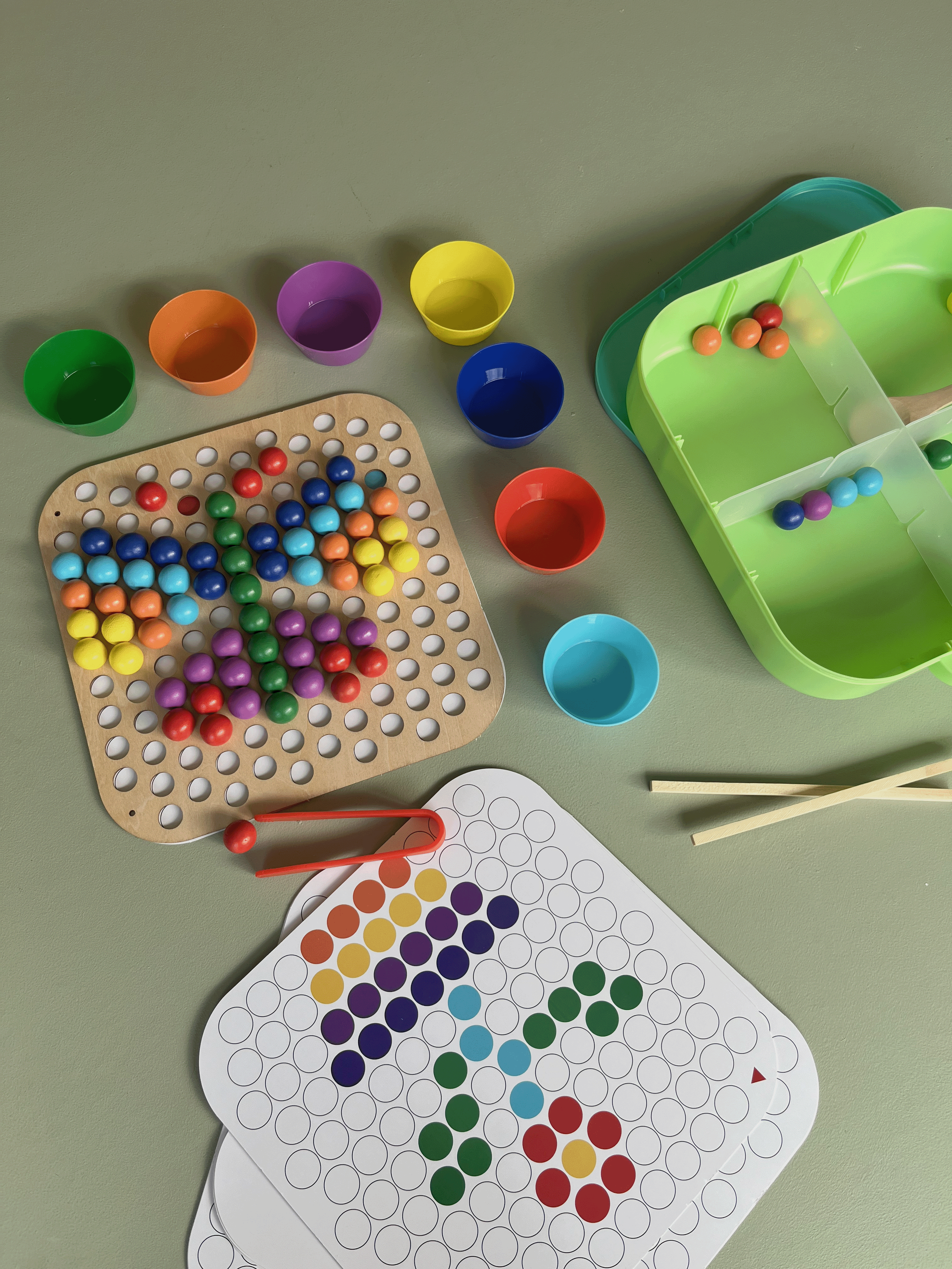 - Visual Perception: Sorting and placing beads according to colour or pattern templates on the board enhances visual perception. Children learn to recognize and distinguish between different colours and shapes, which are essential skills for reading, writing, and interpreting visual information.