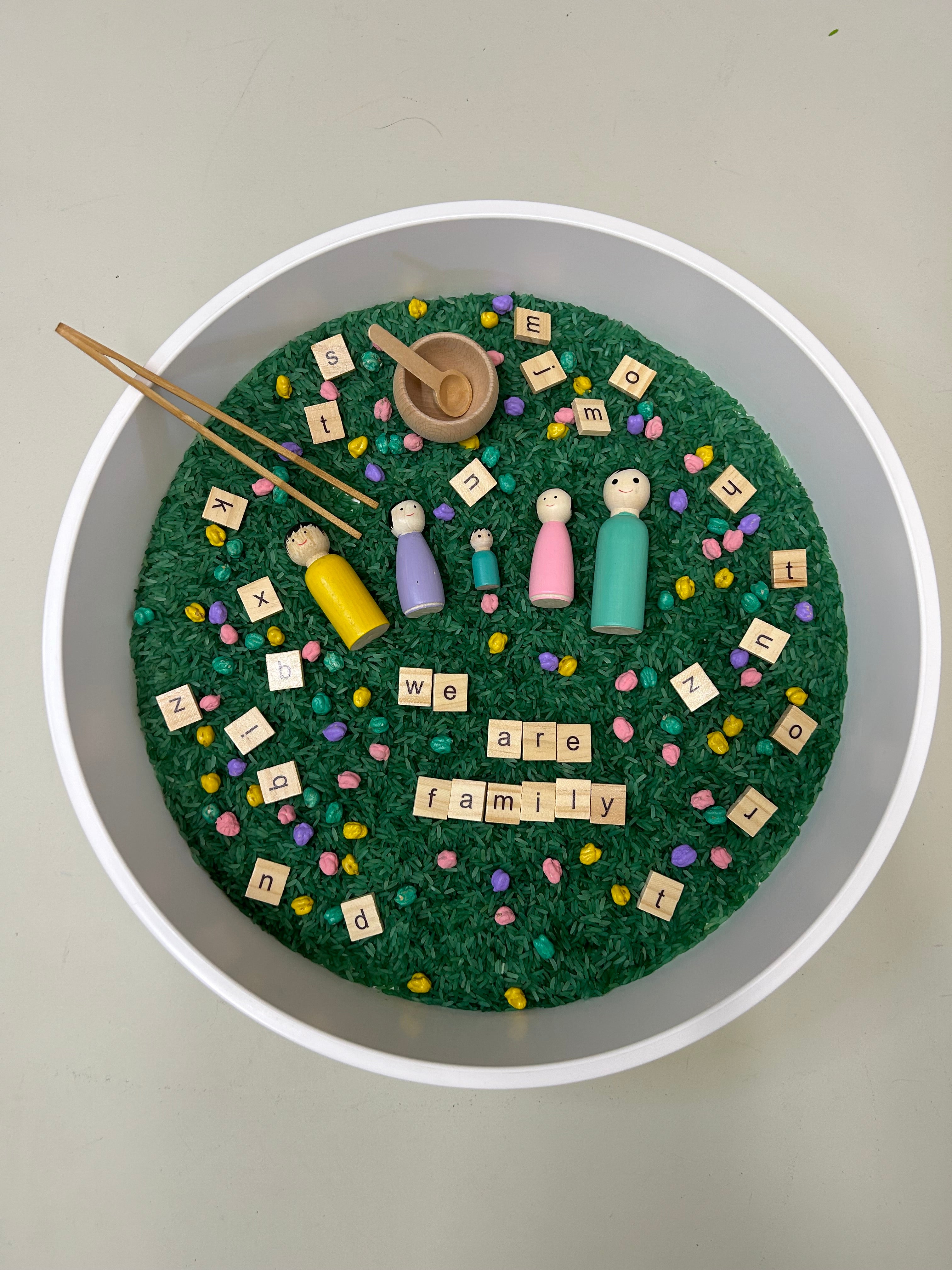 • Sensory filler: 450g coloured rice