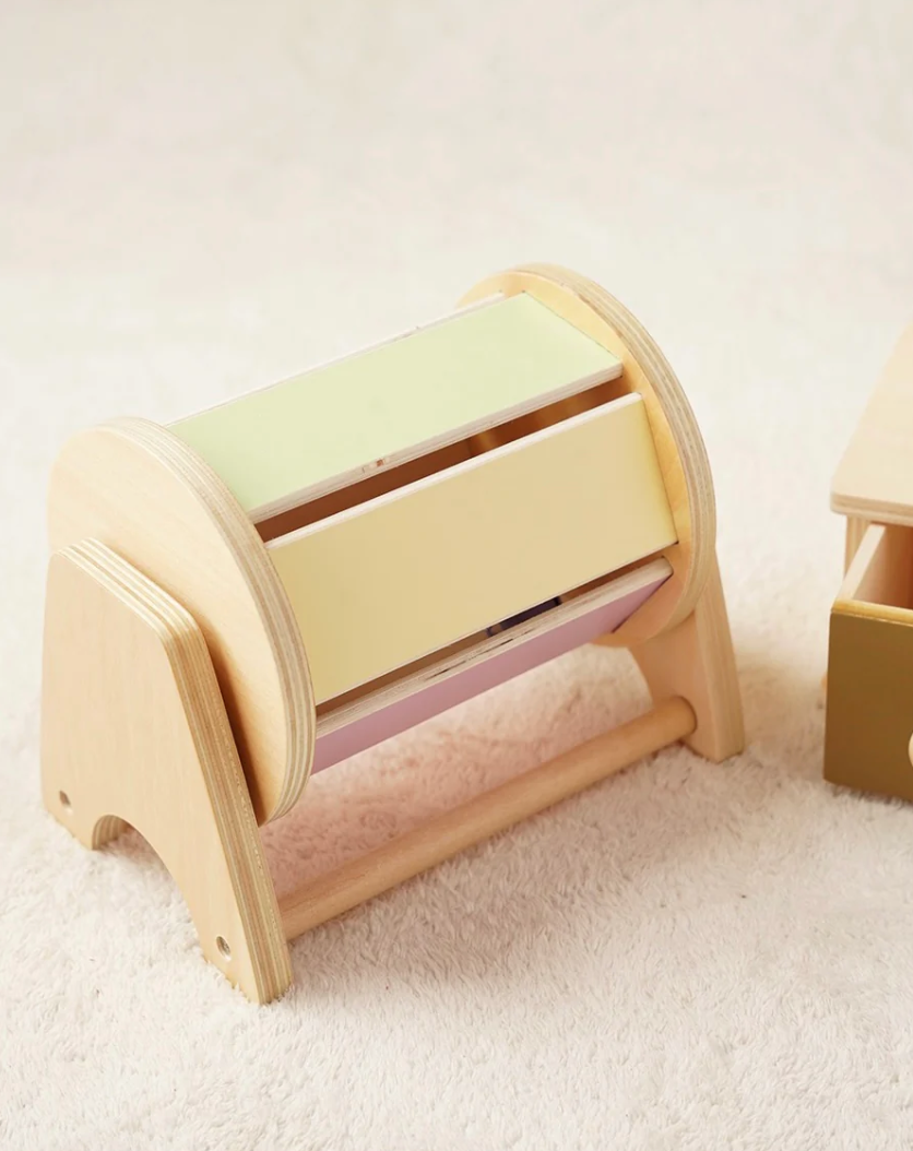 This beautiful Montessori wooden toy is a great addition to any family looking to start their Montessori material journey. The drum can be used either sitting up or many babies’ favourite during tummy time.