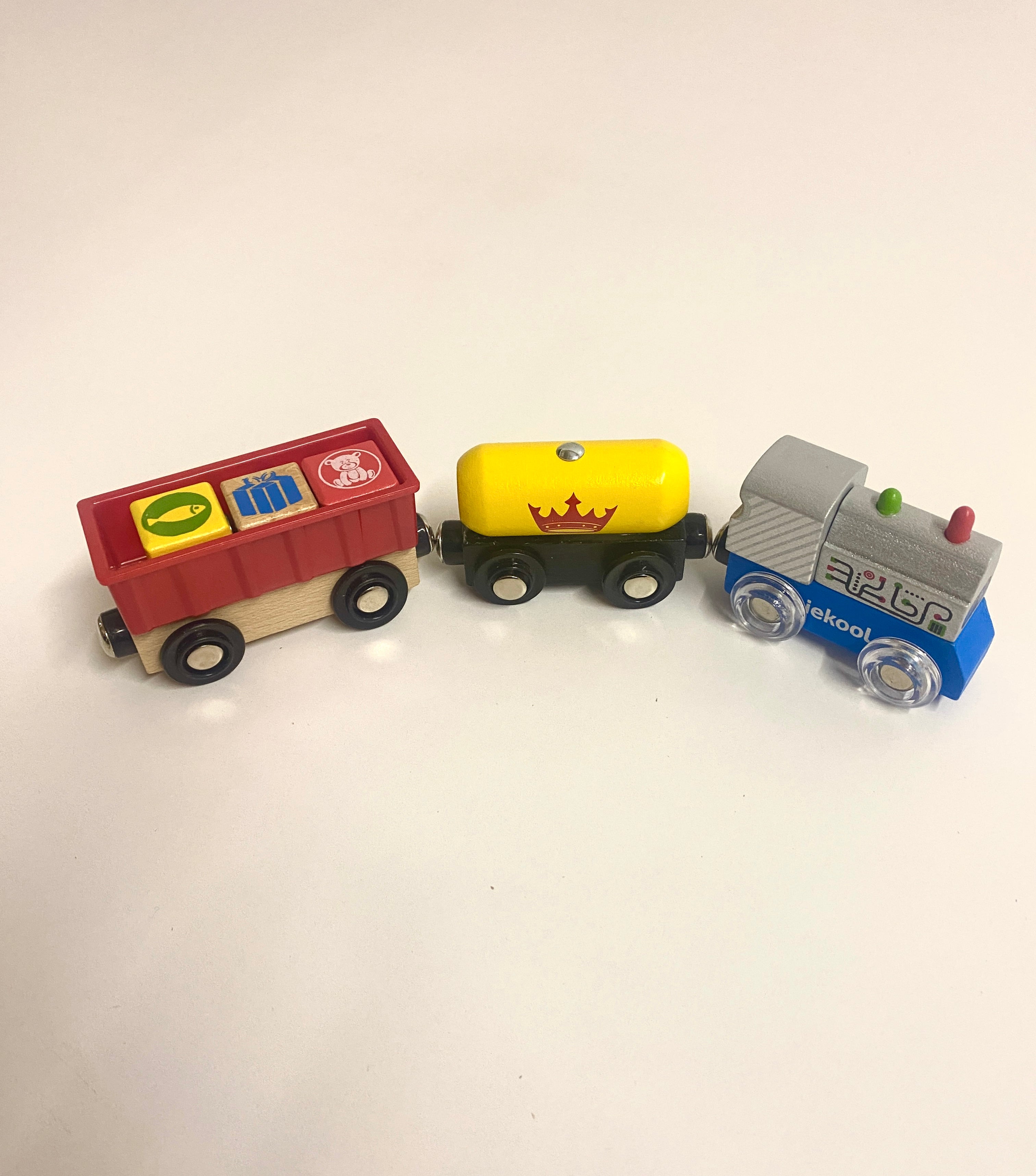 - Iekool Train Royal Goods Transport (Front of train: 7.5cm x 5cm, 1 x carriage: 9cm x 4.5cm, 1 x carriage 7.5cm x 4.5cm)
