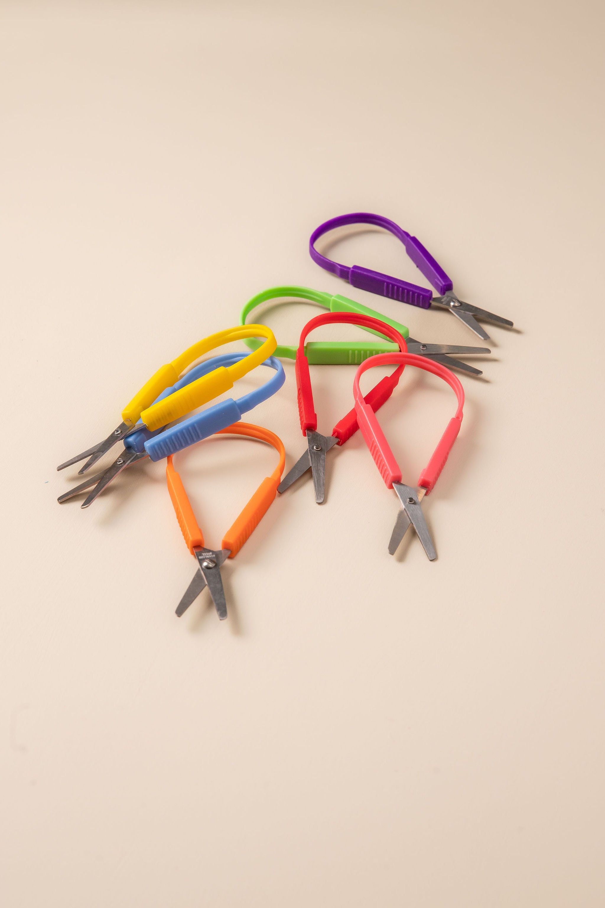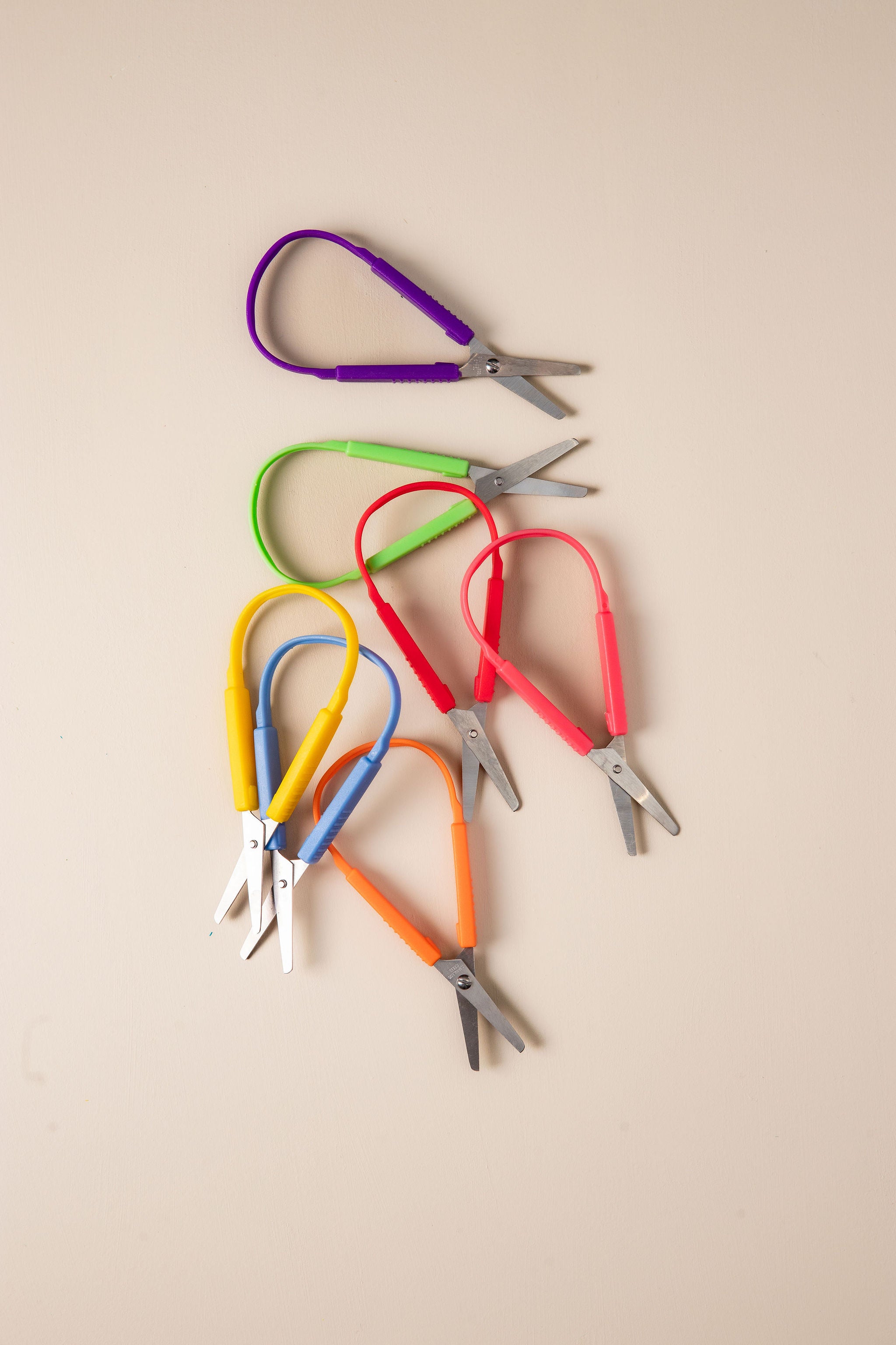 These easy grip scissors feature a flexible, plastic ergonomic handle and blunt tips with high-quality stainless steel blades. They are designed for ease of use, simply squeeze the handles together, and the blades spring back automatically. Perfect for little hands.