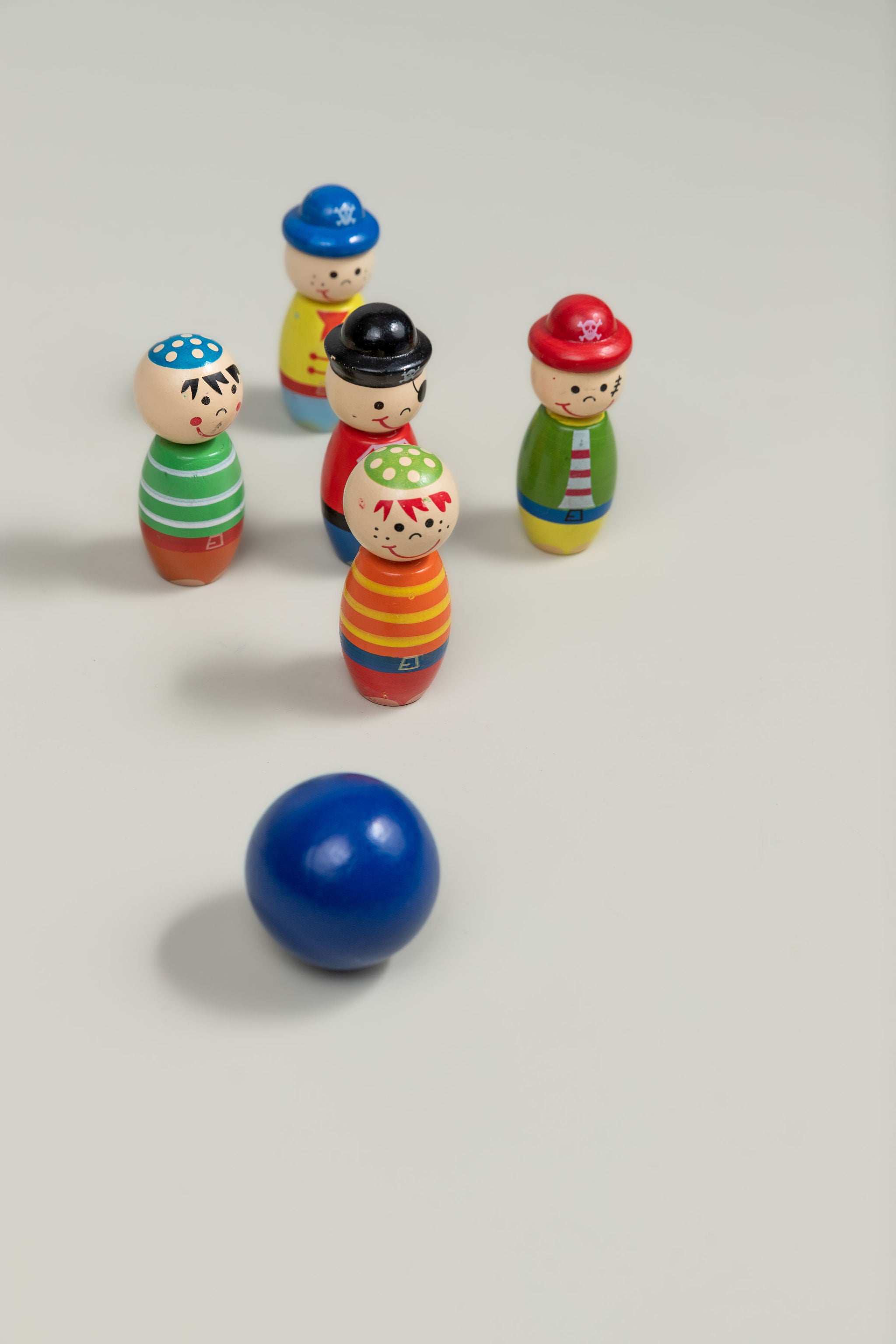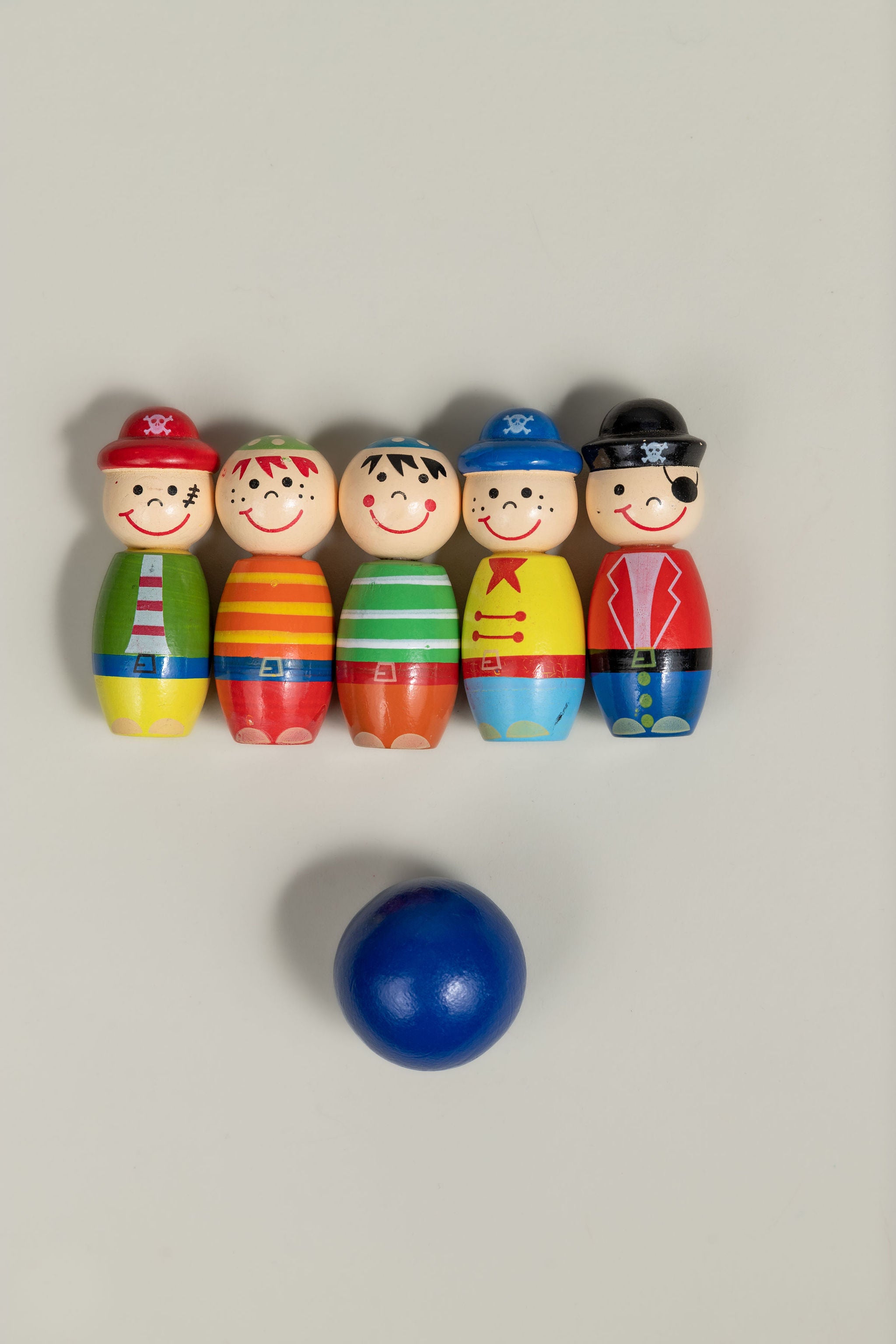 Meet your pirate crew—5 little wooden pirates just waiting to be knocked over! Grab the mini wooden bowling ball, line up the pirates, and roll!