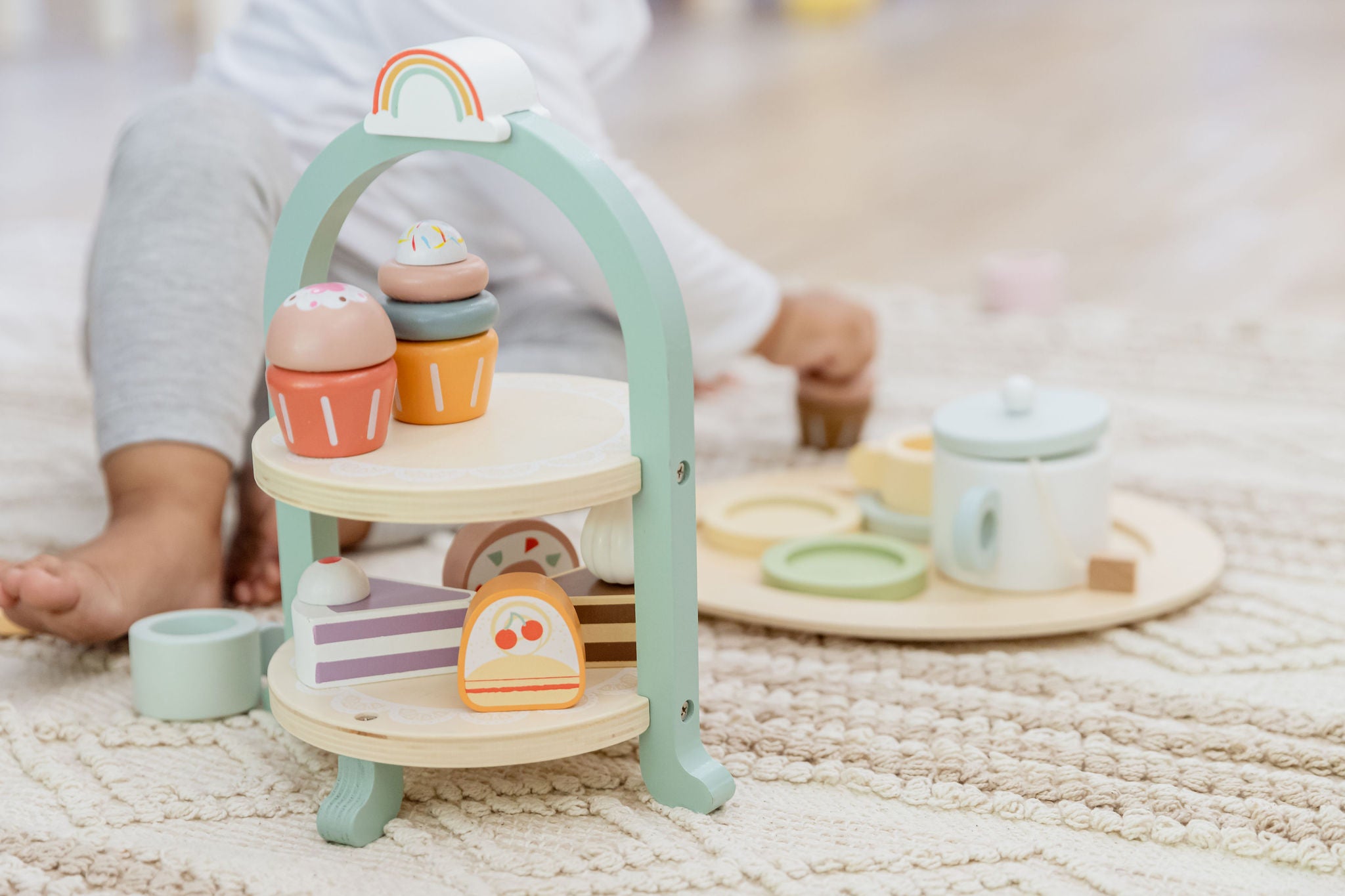 Host the perfect tea party with this elegant Royal Afternoon Cake Stand! With beautifully detailed cakes and floral designs, it’s ideal for pretend play high tea, birthdays, or inviting grandma and the teddy bears to a special afternoon celebration. This charming set encourages imaginative play, social interaction, and role play, all while adding a touch of sophistication to your child’s play kitchen or tea set.