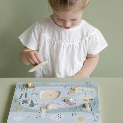 The adorable Little Dutch Wooden Sound Puzzles, Pond OR Little Farm are perfect for your ever curious little ones, a great way for little ones to begin recognising their shapes and learn their individual sounds.