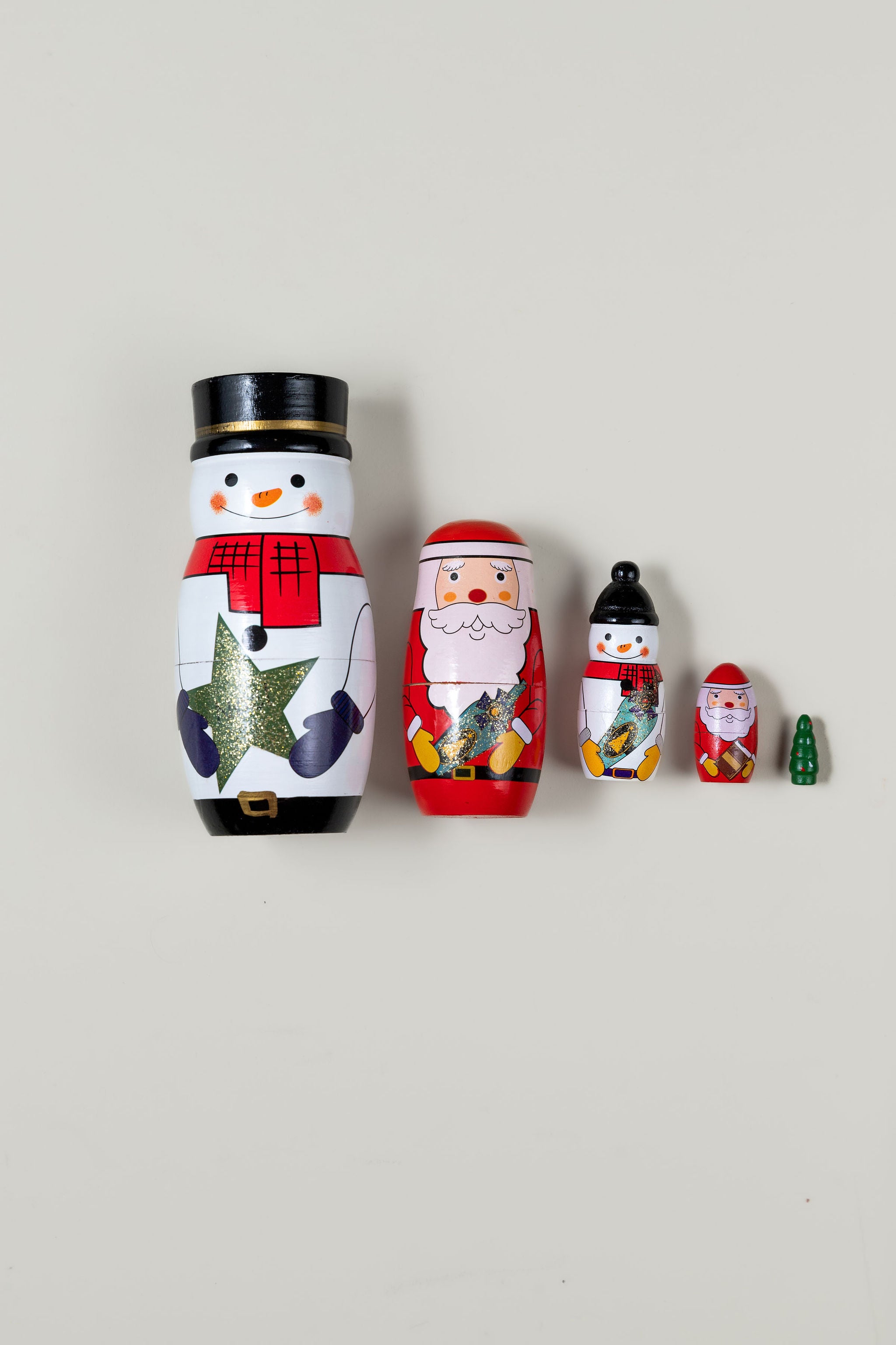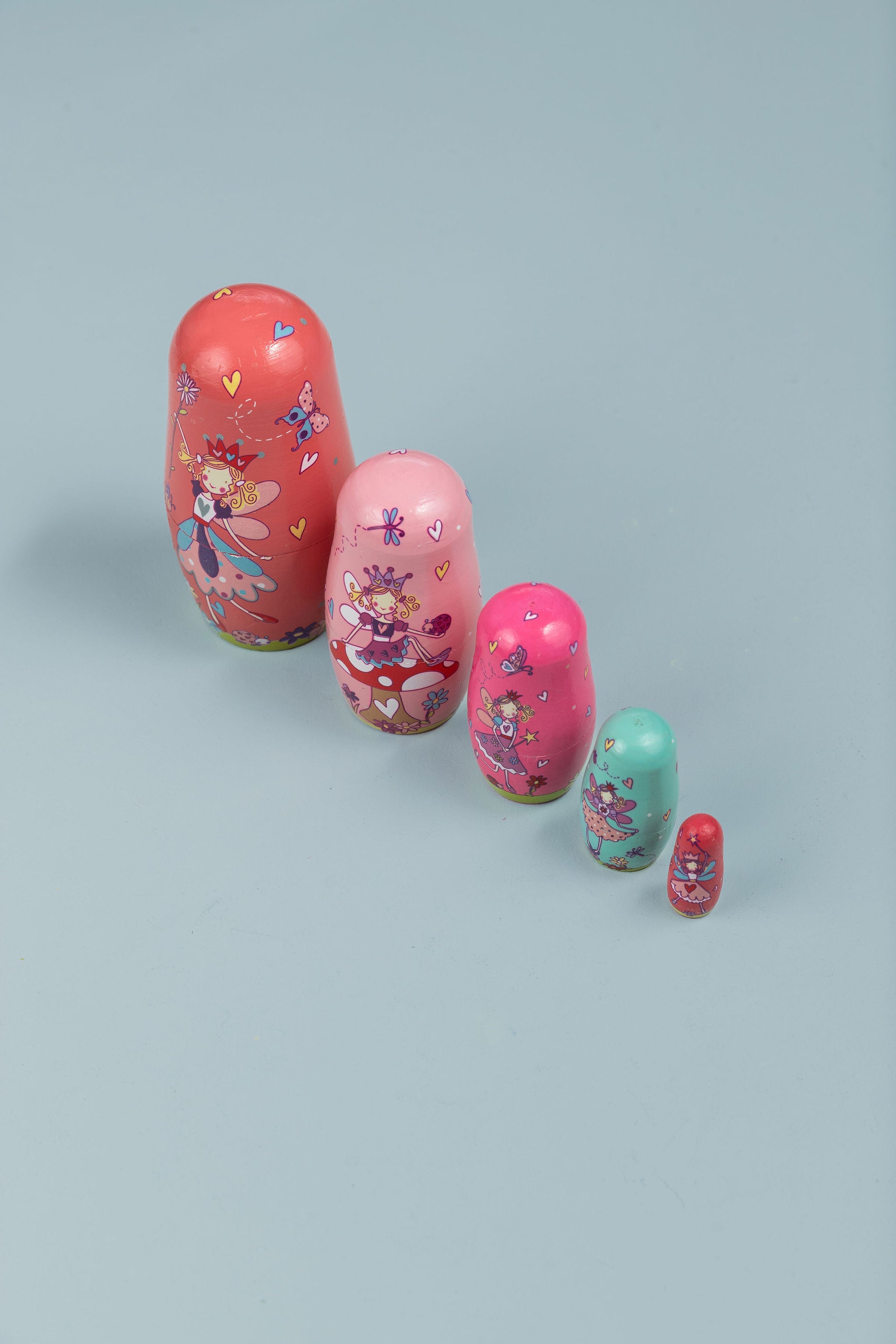 - 5 wooden nesting dolls of decreasing size
