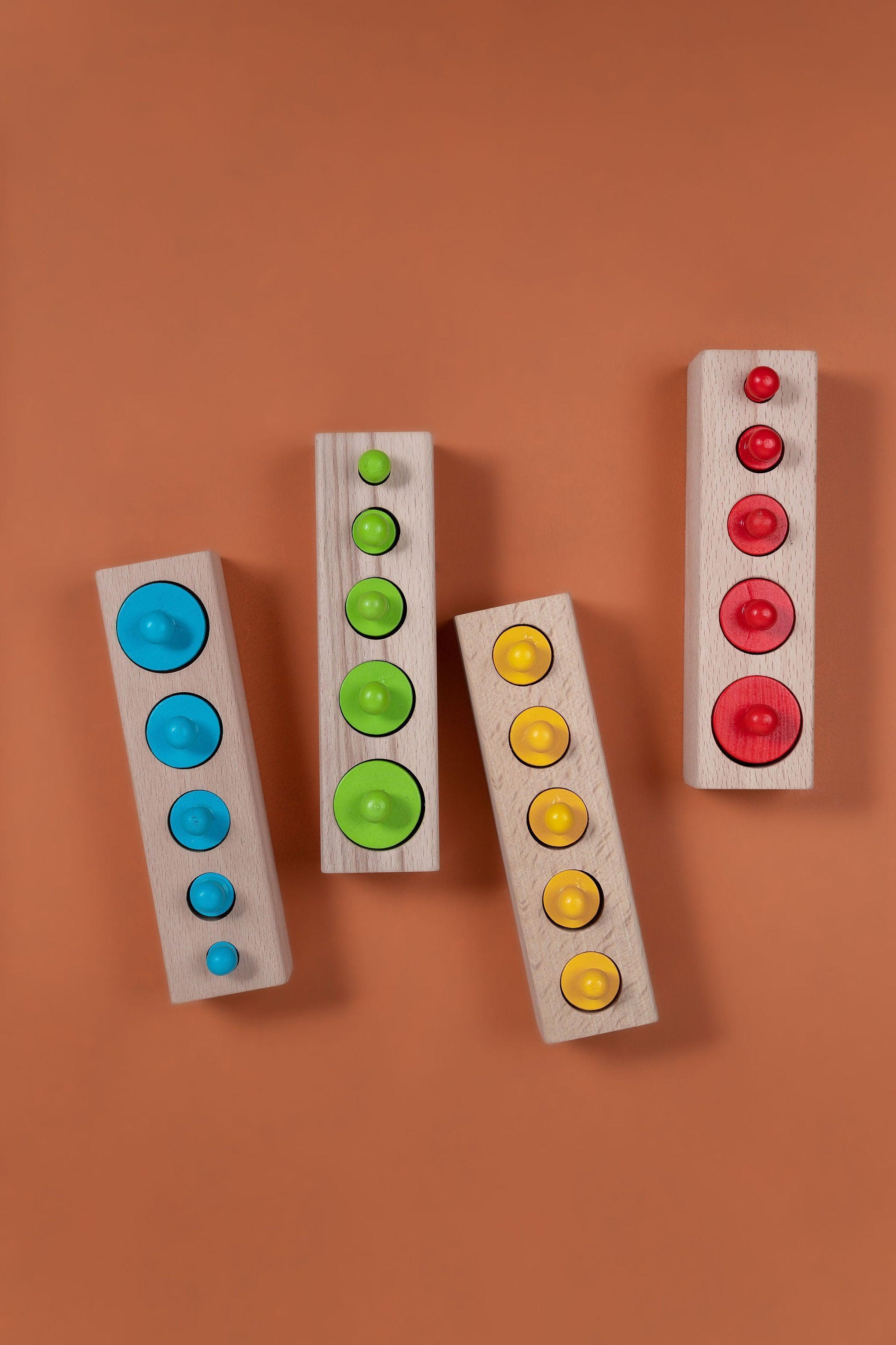 It’s also fantastic for colour sorting, making patterns, and threading, each peg has a tiny hole at the top, so children need to hold it steady while threading, which builds both hand strength and coordination.