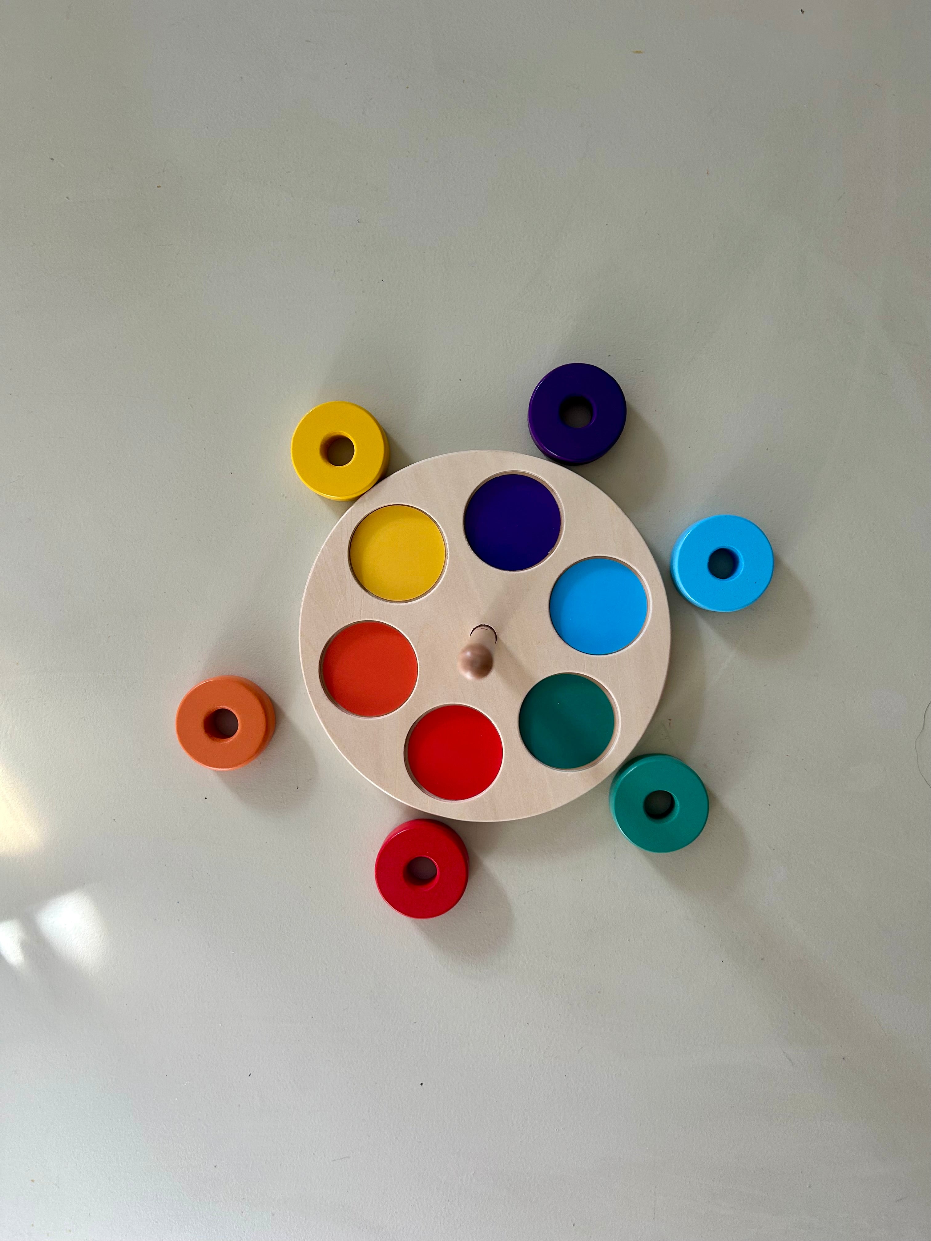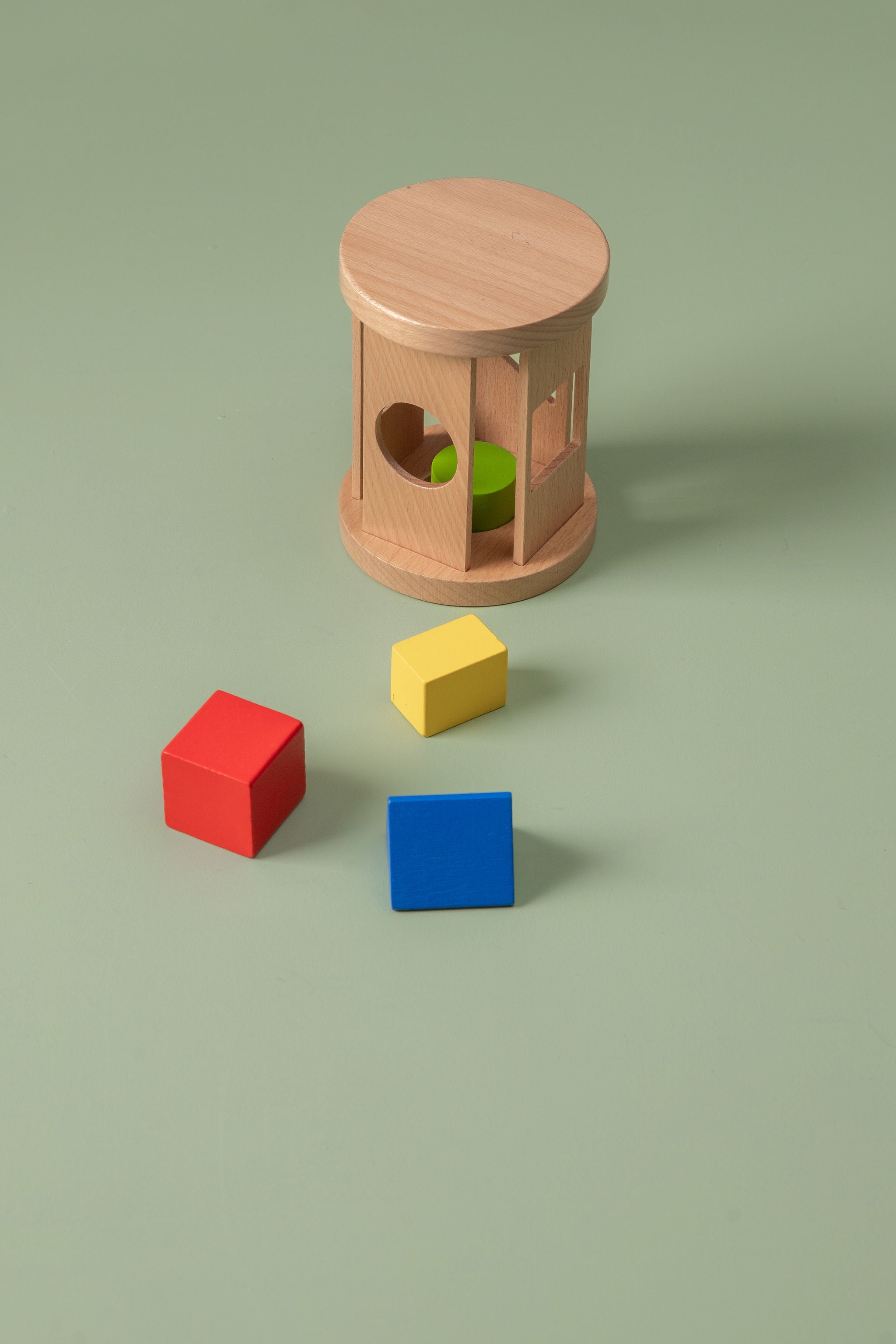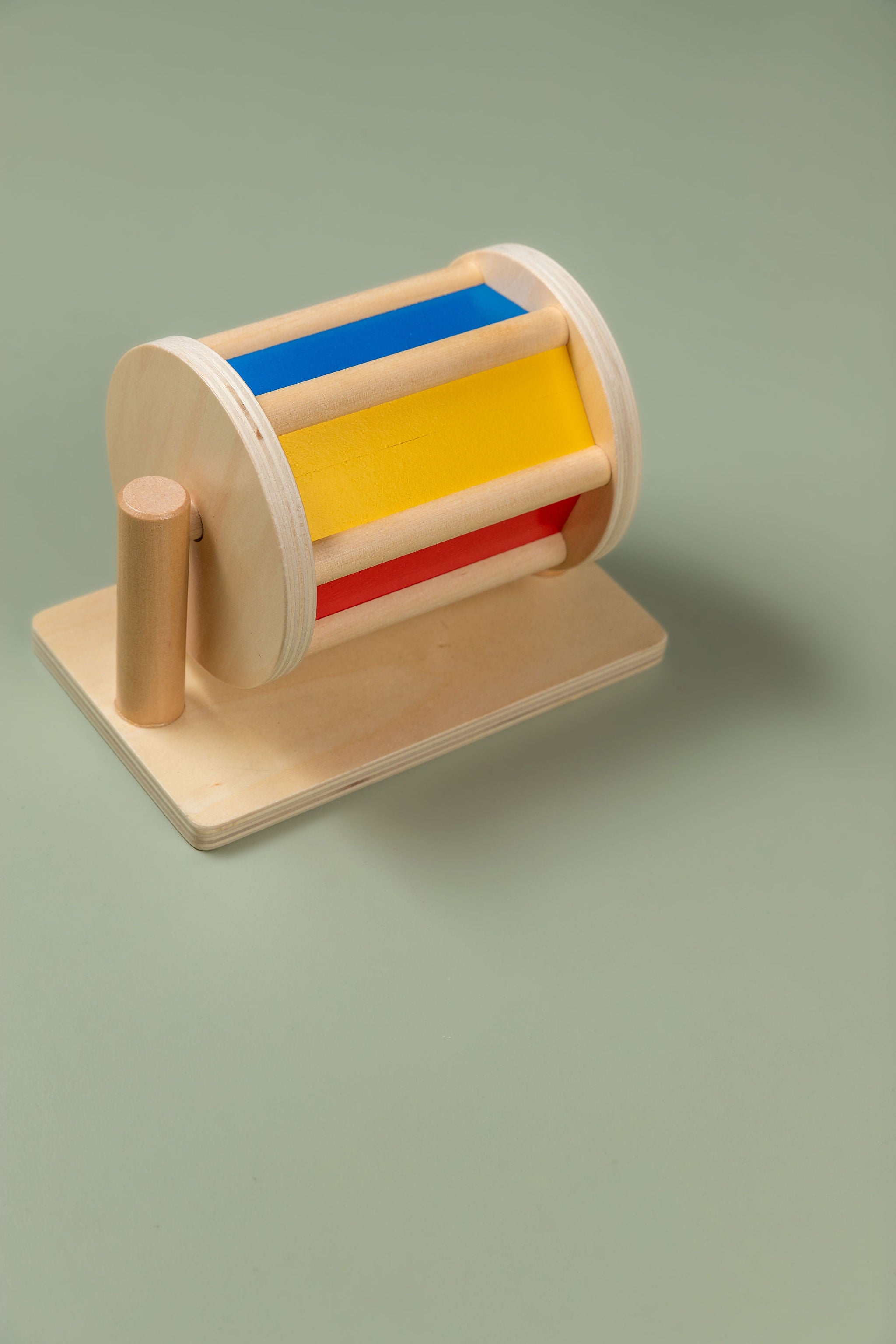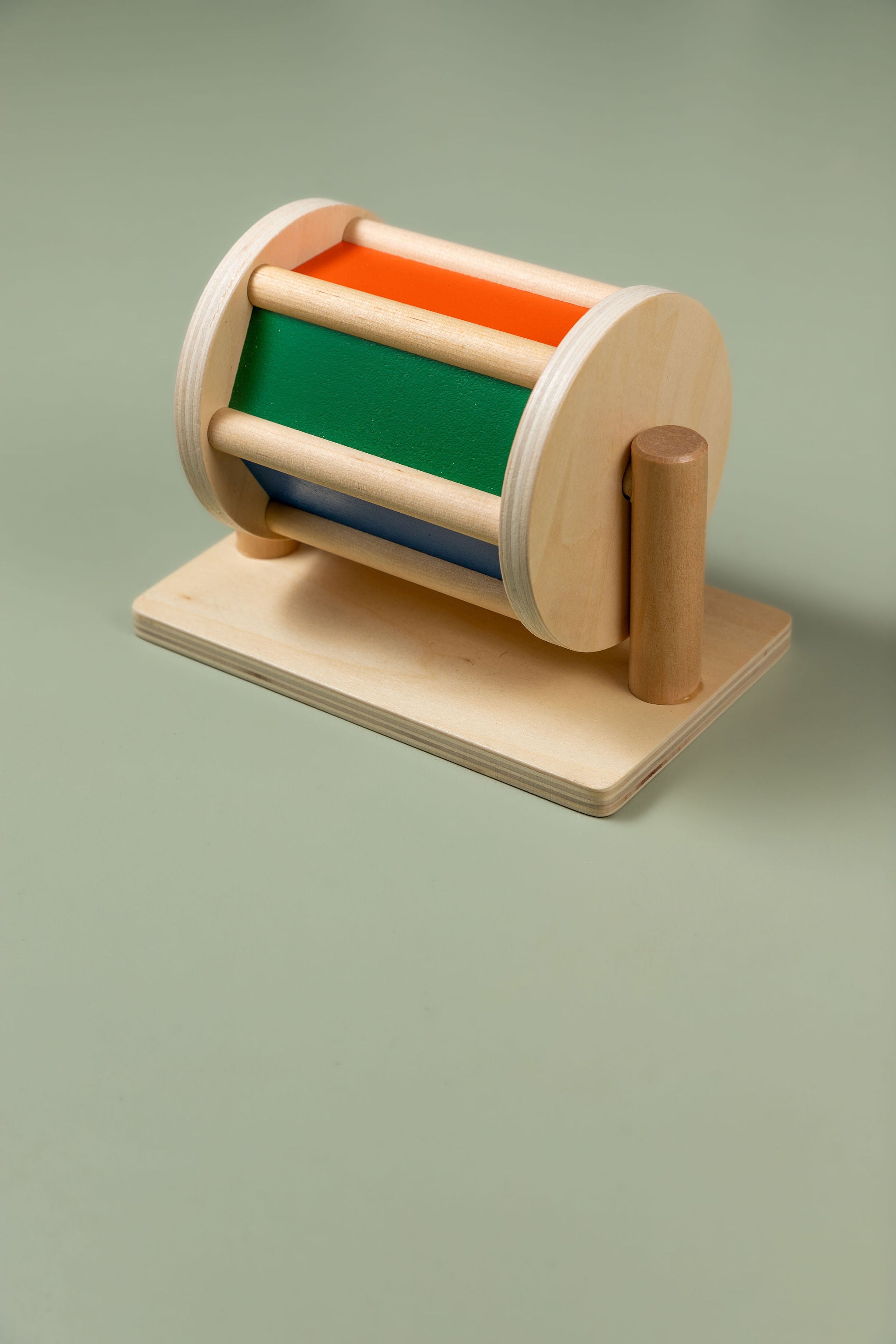 With 6 sides, this Montessori spinning drum toy presents assorted colours for babies 6 months and older to spin through. Let the rolling drum help your baby fine-tune motor skills through hand movements while giving them a deeper impression of colours. Spin the drum and reveal red, yellow, green, blue, orange, and white.