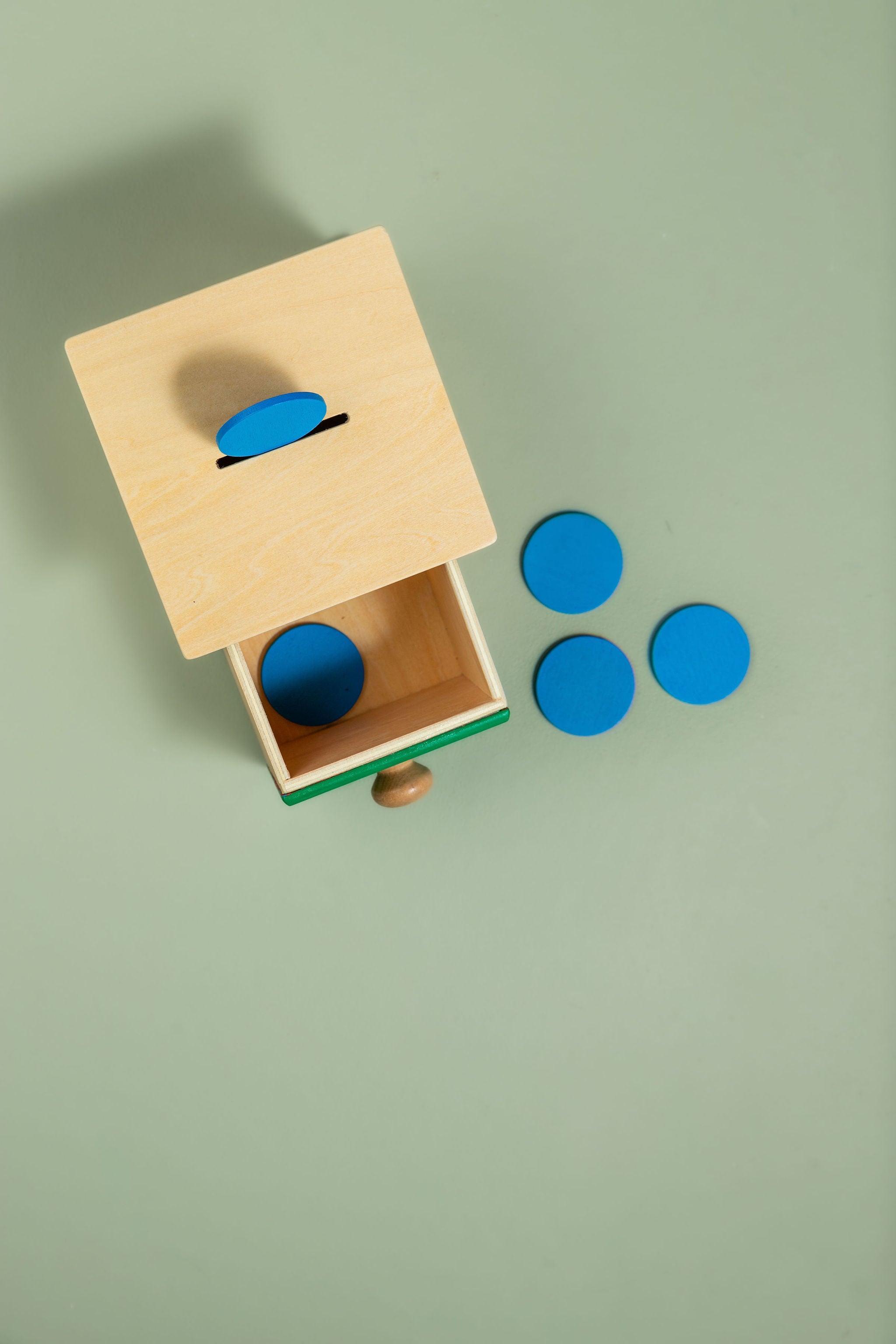 This compact box is designed for little ones to explore and develop their manipulative skills while also gaining an understanding of object permanence.