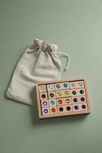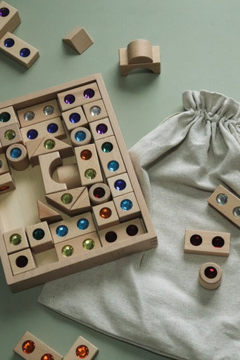 Glittery, shiny and sparkly gem blocks for providing open ended play opportunities. Develop your little one's creativity as well as their problem solving skills. Balance them or use to make buildings, imaginary castles or patterns. Develop curiosity and awe in little ones as they see the world in rainbow colours.