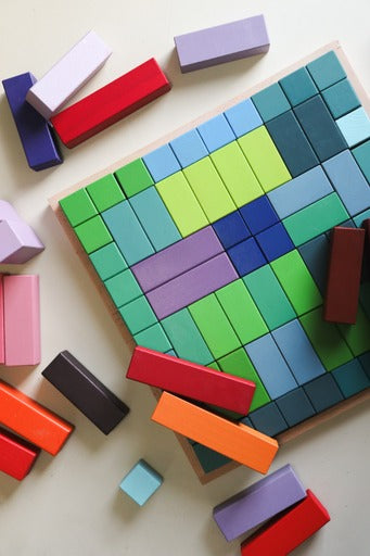 These blocks, offer versatile learning opportunities. From constructing towers and marble runs to creating intricate patterns and pictures, they can also be incorporated into pretend kitchen play or utilised as colourful math manipulatives. Sorting by size and colour adds an extra dimension to the learning experience.