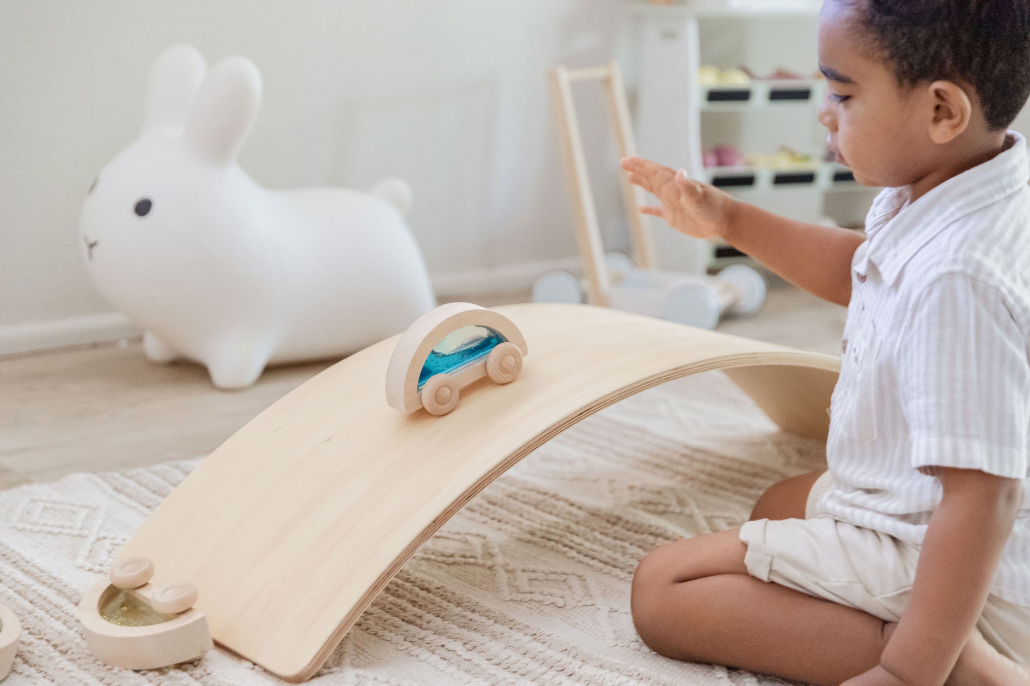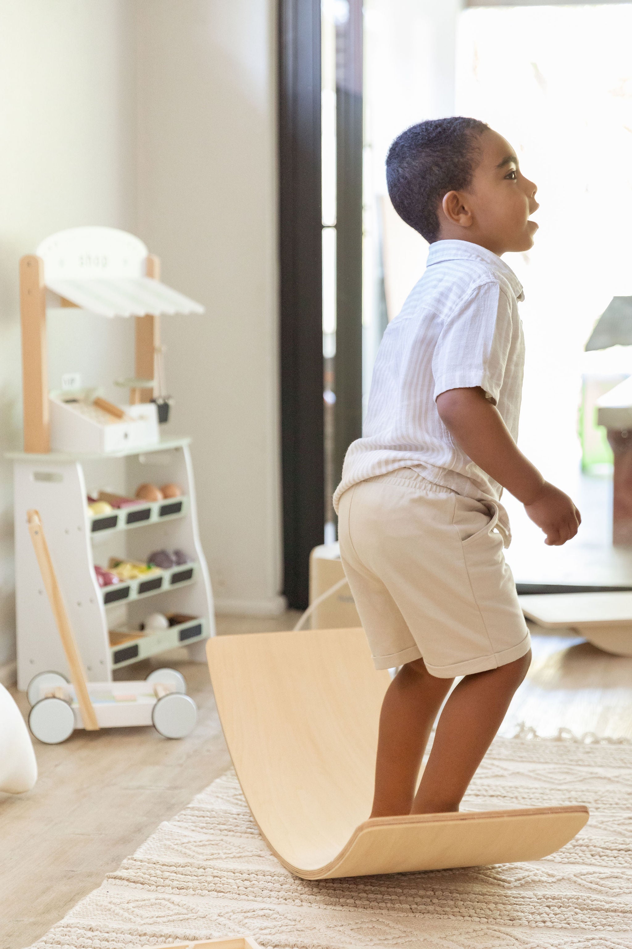 - The undefined curved shape of wooden balance boards sparks creativity and imagination.
