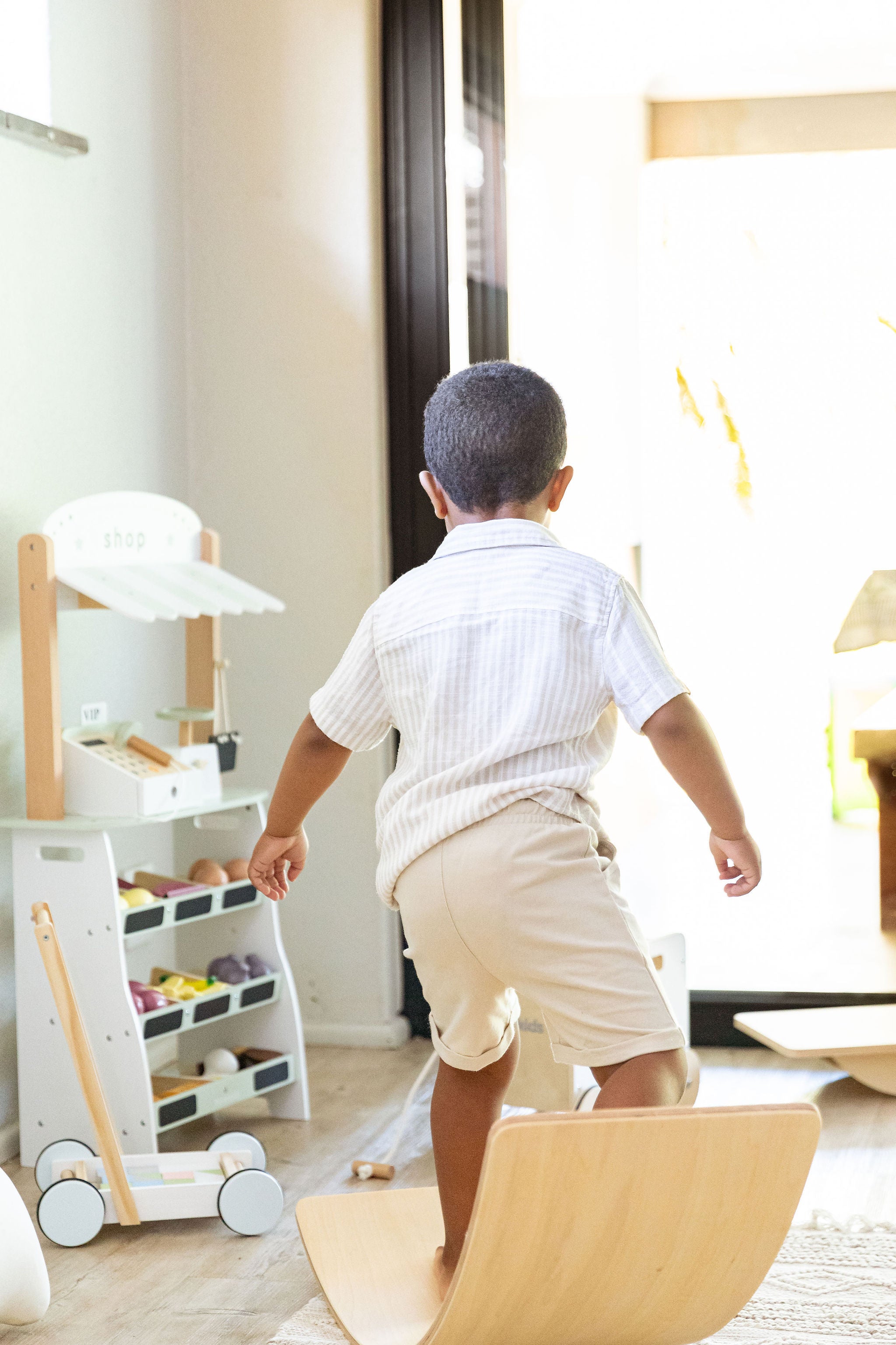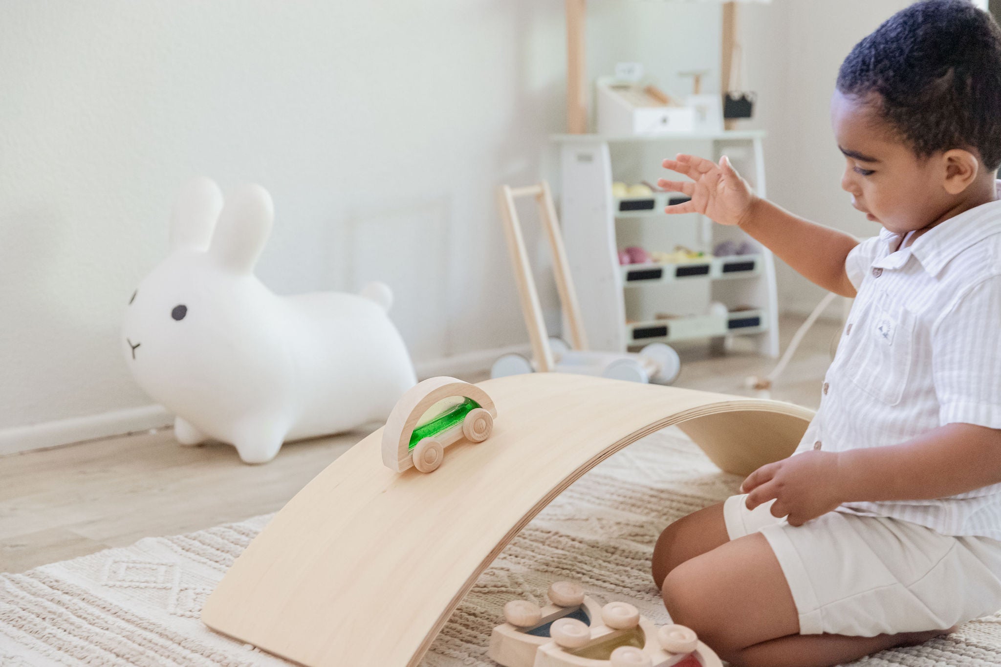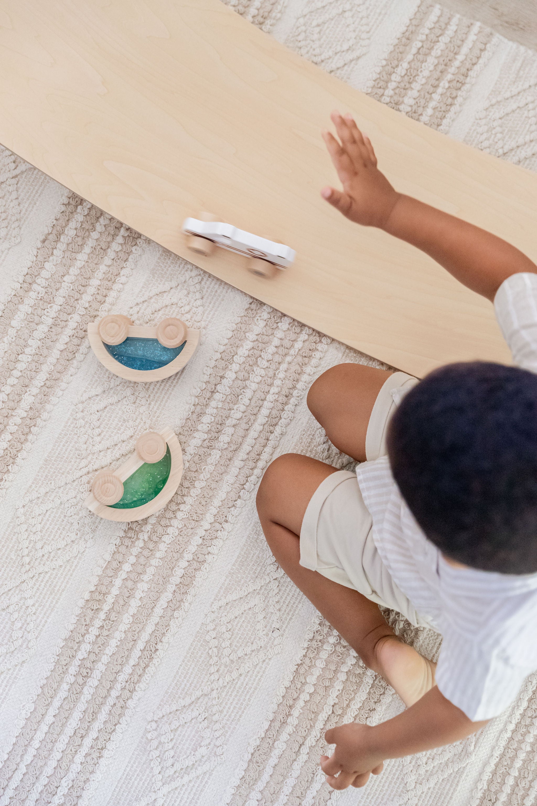 The Wooden Balance Board is a high-strength wooden curved board designed for both children and adults. It’s based on the traditional Waldorf arch board concept but has been redesigned to be robust and eco-friendly It’s versatile: Kids can slide down it, use it as a bridge, or even turn it into a road for toy cars. The board’s undefined curved shape inspires creativity and imagination, providing endless play opportunities for kids.