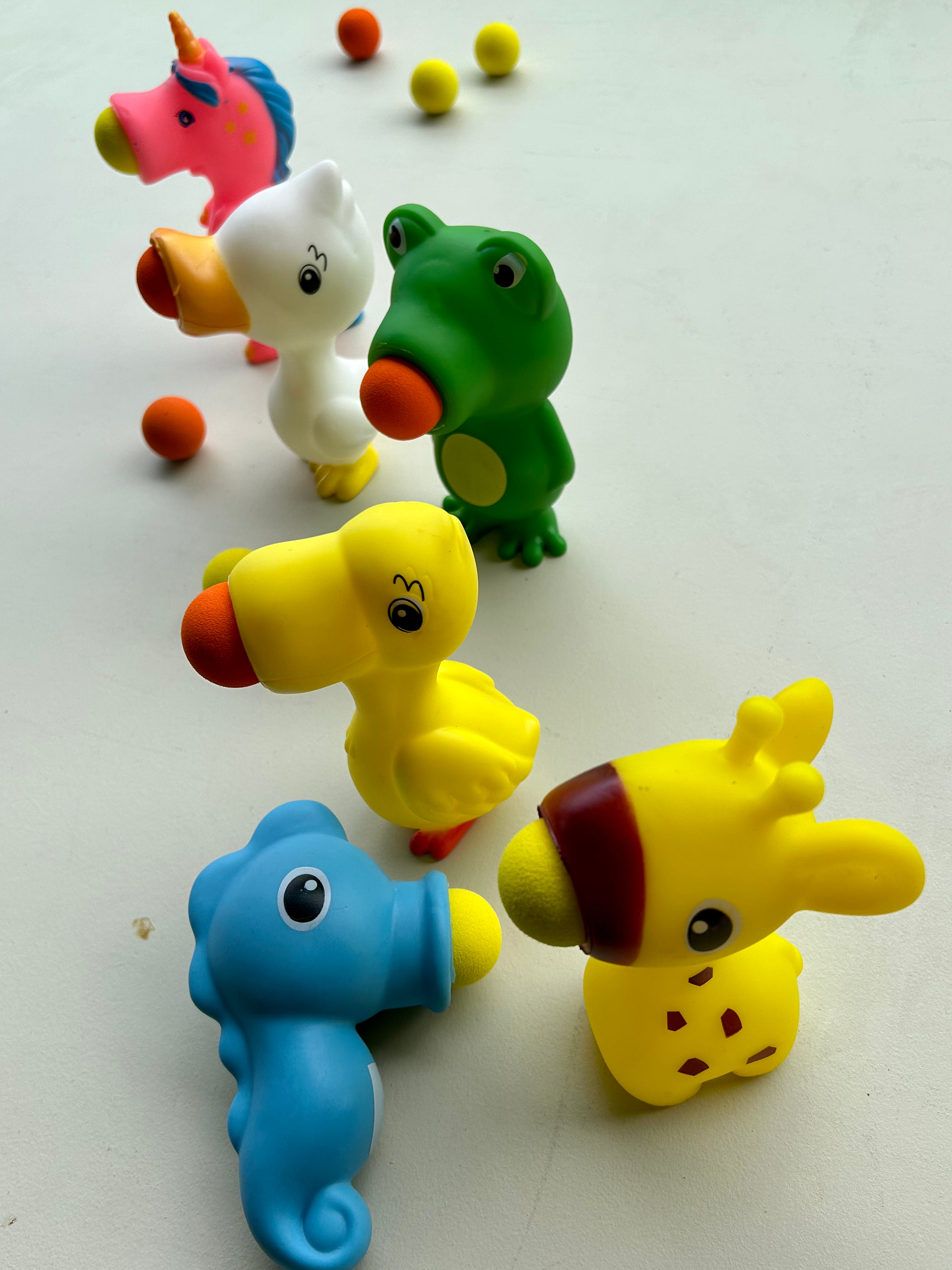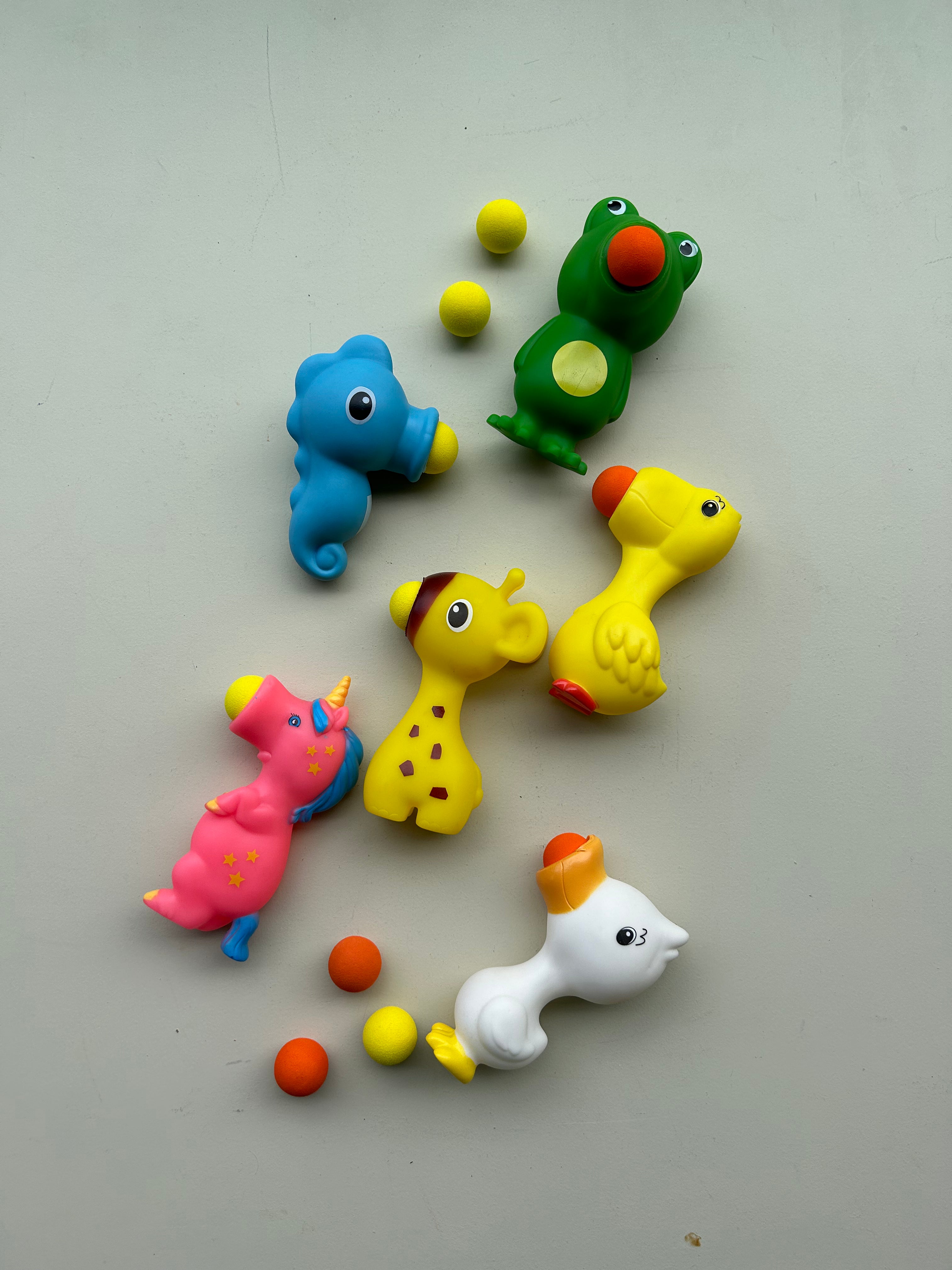 · Language & social skills These poppers go beyond physical skills. I’ve built games around them: we shoot balls at a target and talk about where they land, “behind,” “under,” “far,” “close”, reinforcing language around spatial concepts. Speech therapists use poppers as cheap, powerful reinforcers for articulation and language goals.