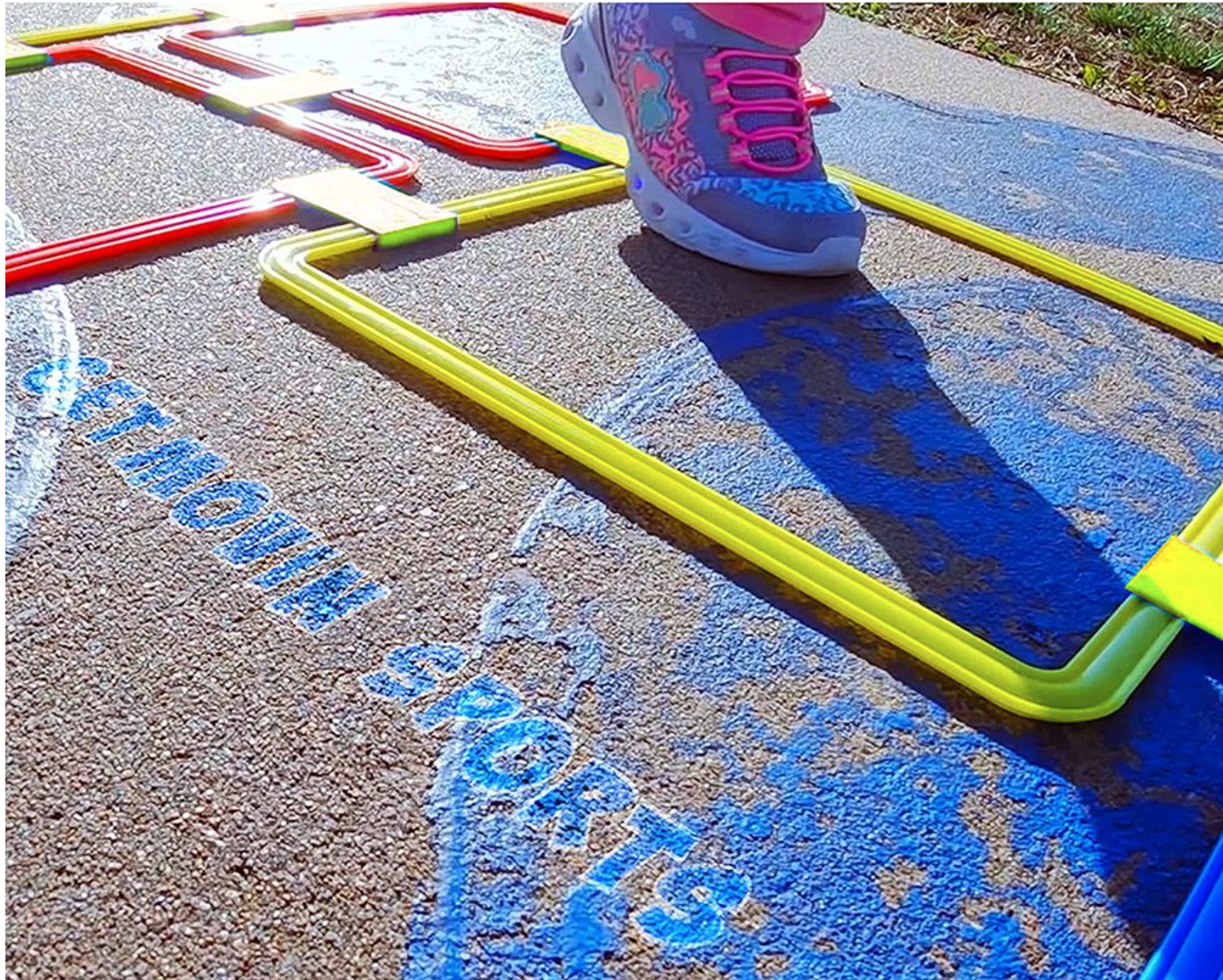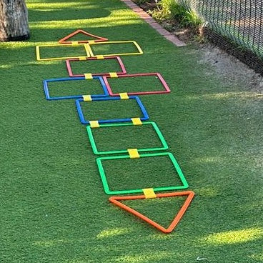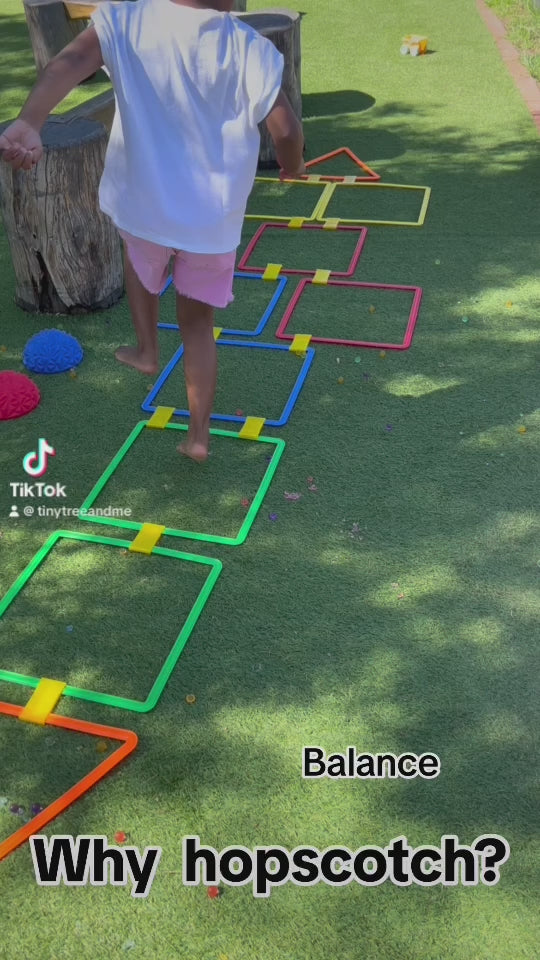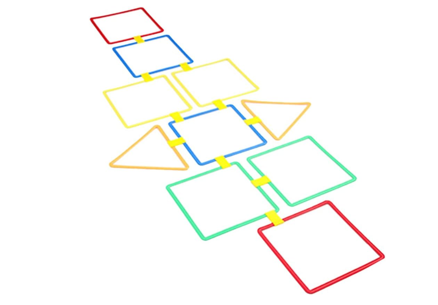 Hopscotch is an ideal physical activity for the whole family. This game set can be arranged in any variation, making it great for speed and agility training. Built with soft but durable plastic, this game can be played outdoors or indoors, on grass, sand, concrete, or gravel. Plus, the package comes with two types of rings to give you more game options. Get moving and have hours of fun with Hopscotch!