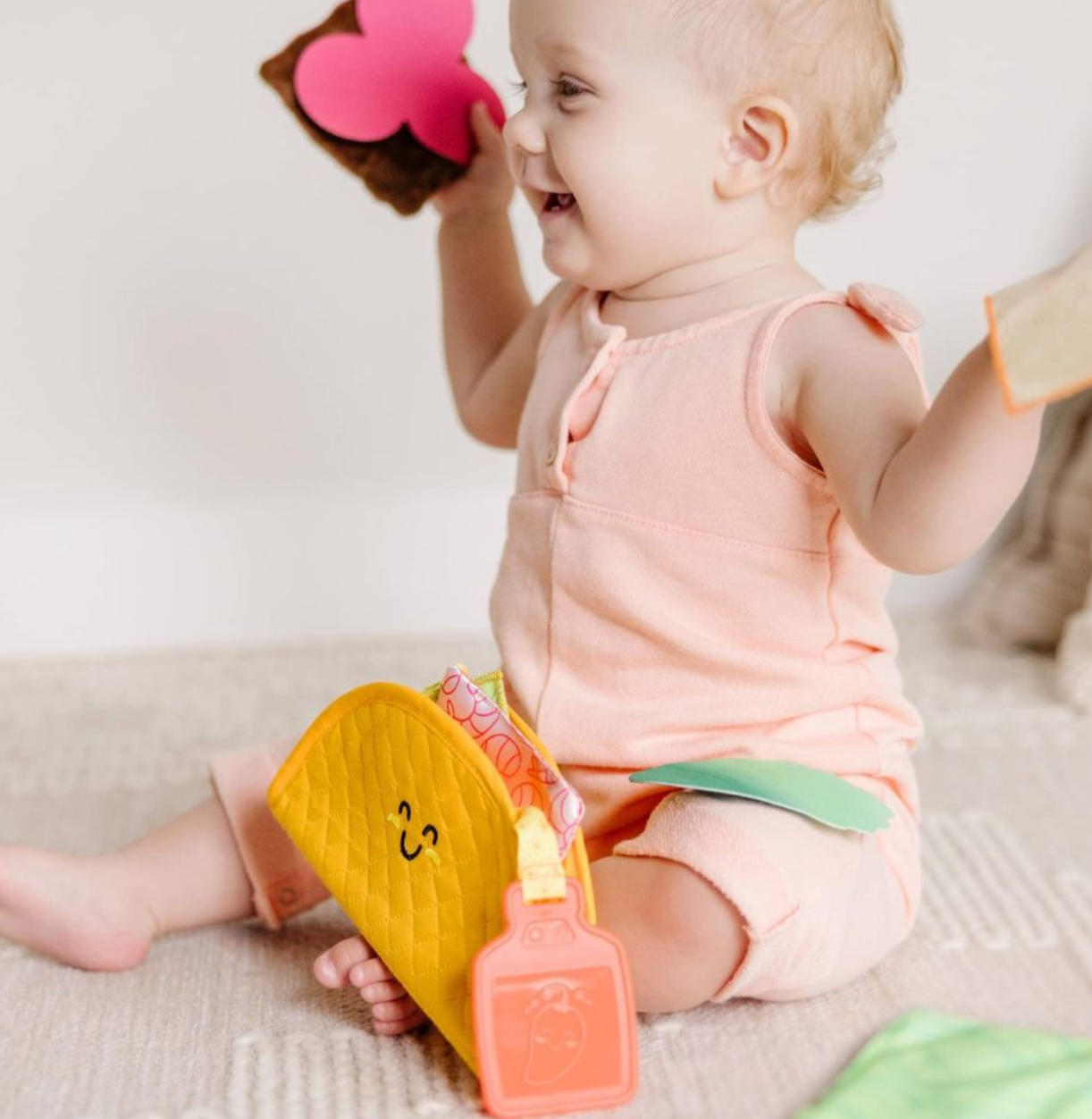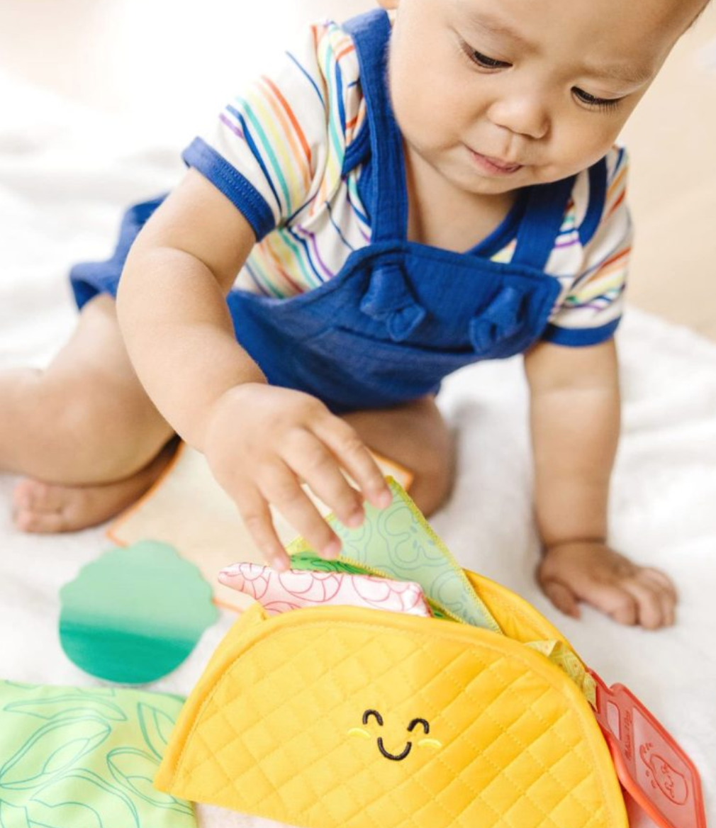 - This soft taco play food fill-and-spill toy is a fun way for infants and toddlers to discover textures and sounds