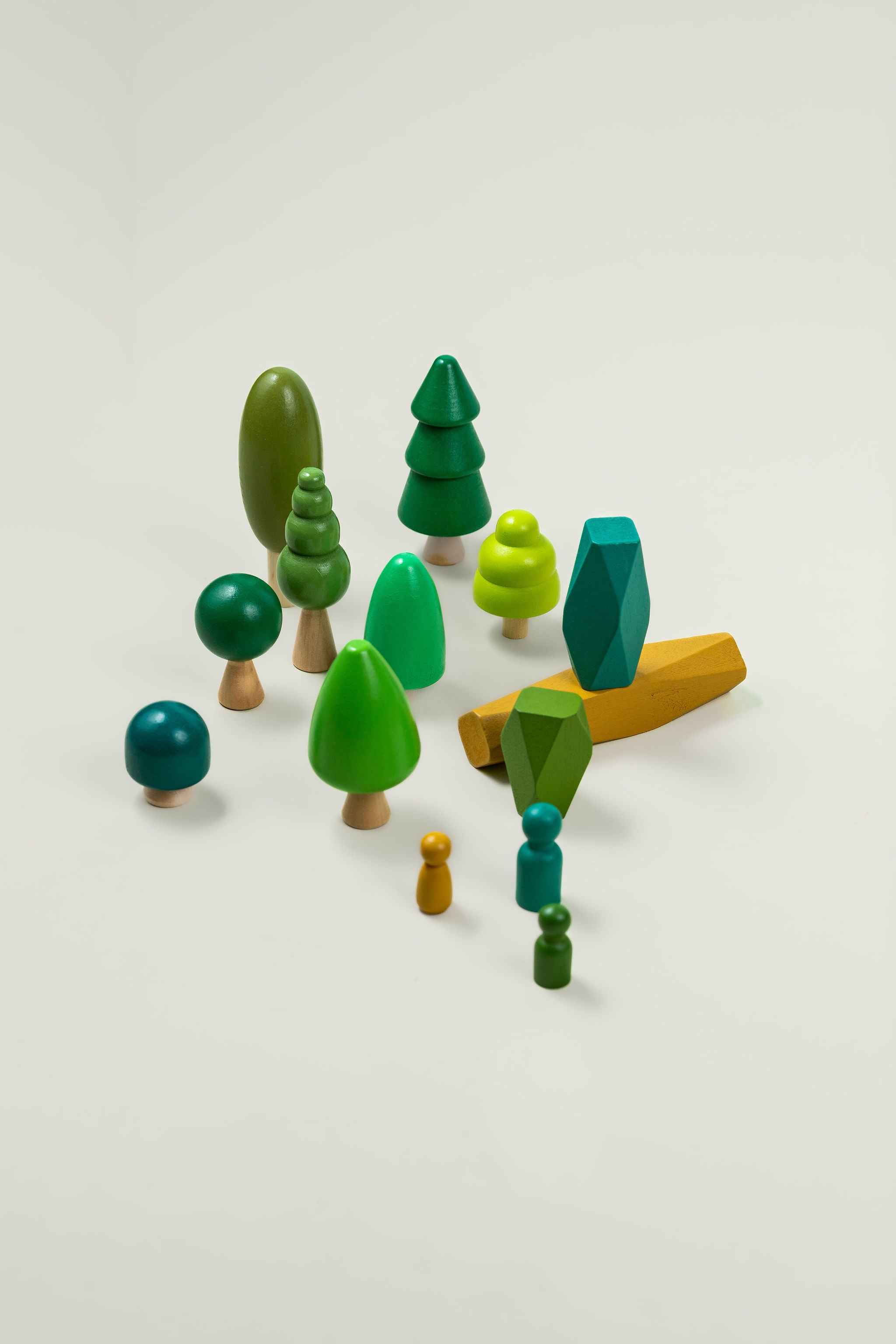Bring small-world play to life with this Open-Ended Play Collection. The beautifully crafted wooden trees, logs, and peg dolls invite children to build, imagine, and create their own little worlds. Perfect for storytelling, pretend play, or adding a natural touch to any play setup, this set sparks endless creativity while supporting fine motor skills and open-ended exploration.