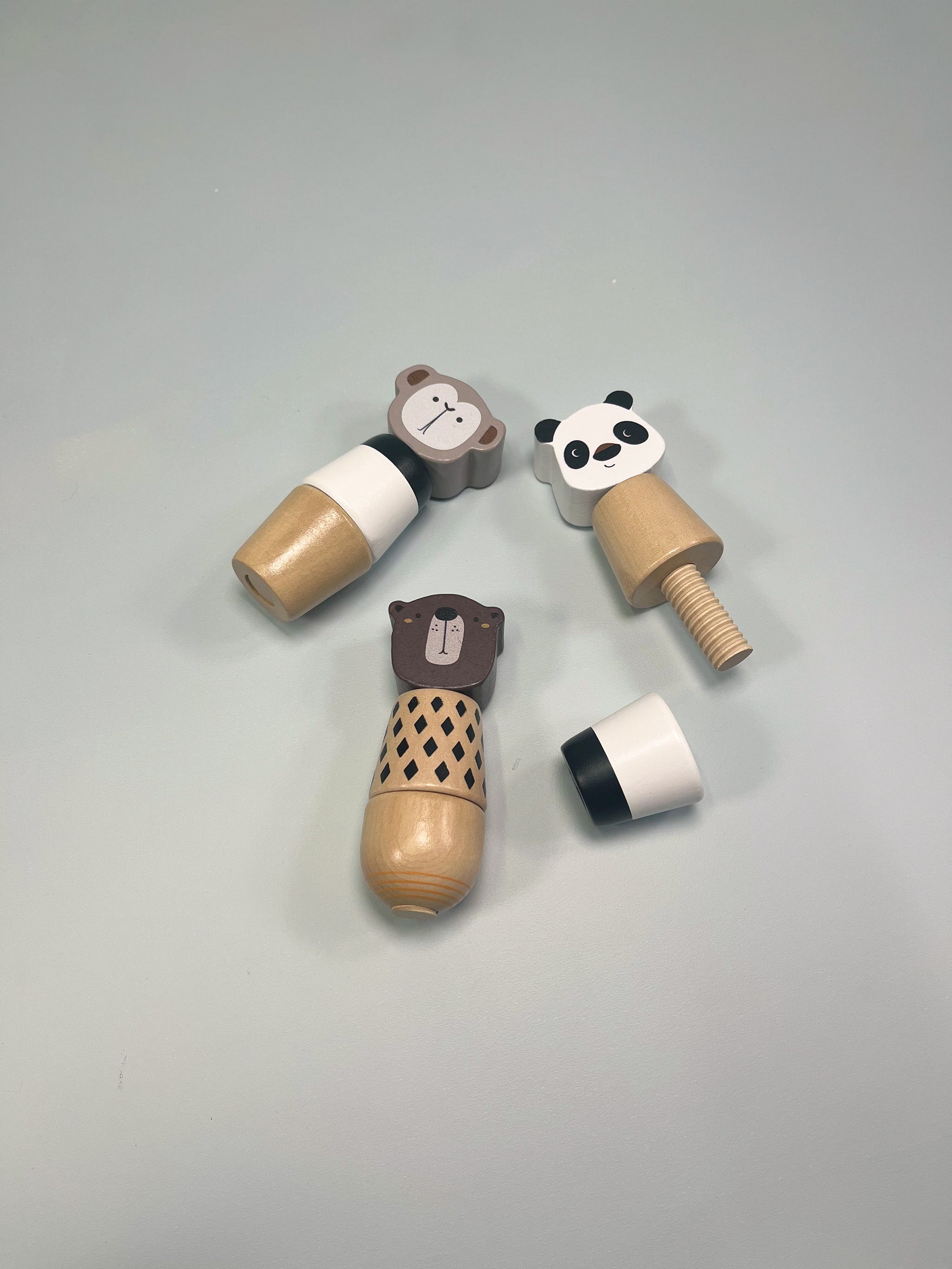Introduce your little one to the world of fine motor development with our charming Animal Wooden Screws. Each set features a cute animal face and big wooden nuts that resemble the bodies of a monkey, bear, and panda. These delightful toys are designed to engage and entertain while promoting essential developmental skills.