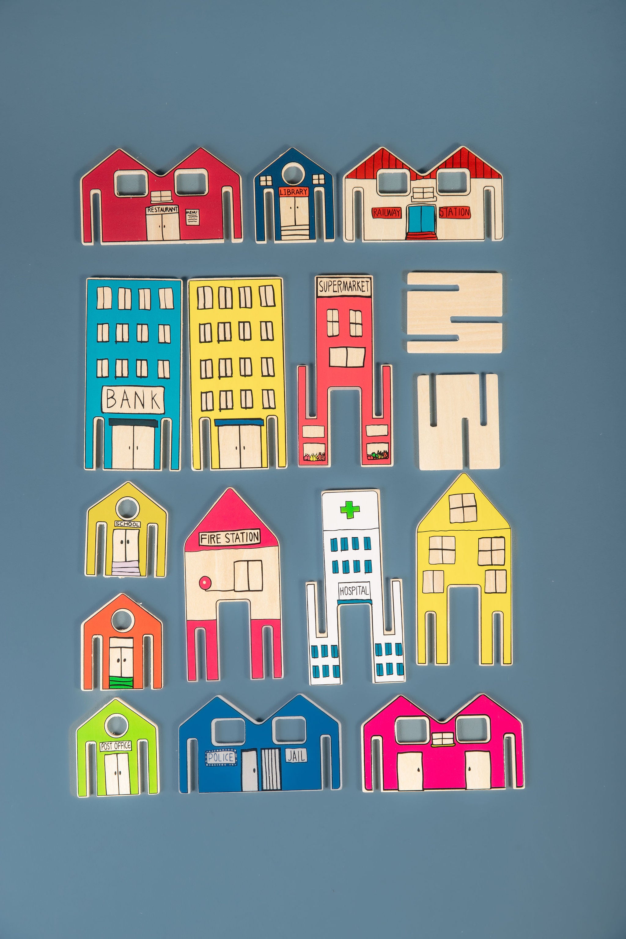 - Modular Magic: Each building in our city is a puzzle waiting to be solved! Four interlocking pieces slide seamlessly into place, creating charming houses, bustling shops, and essential community structures. Assemble the hospital, school, post office, police station, and more. The power to build lies in your hands.
