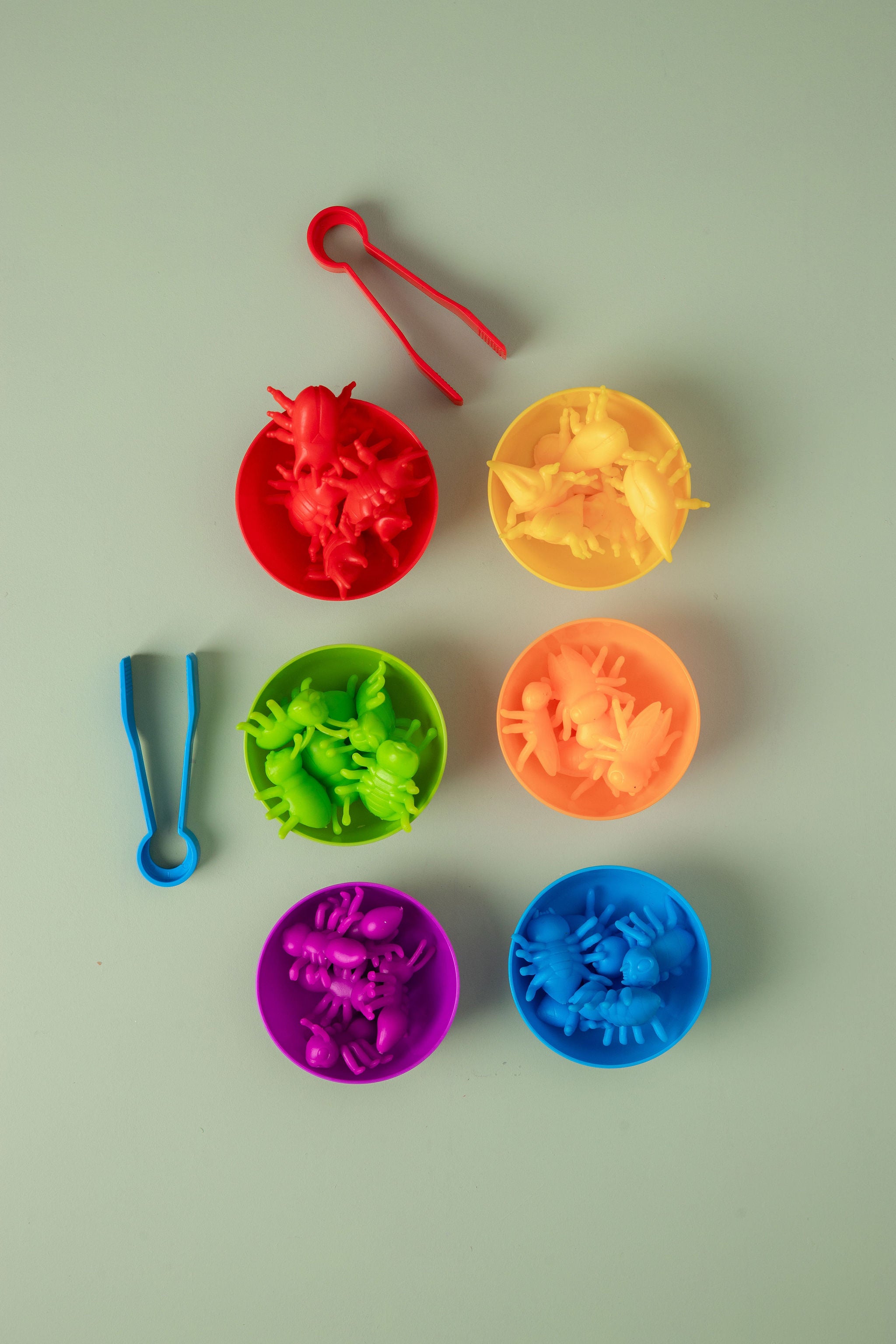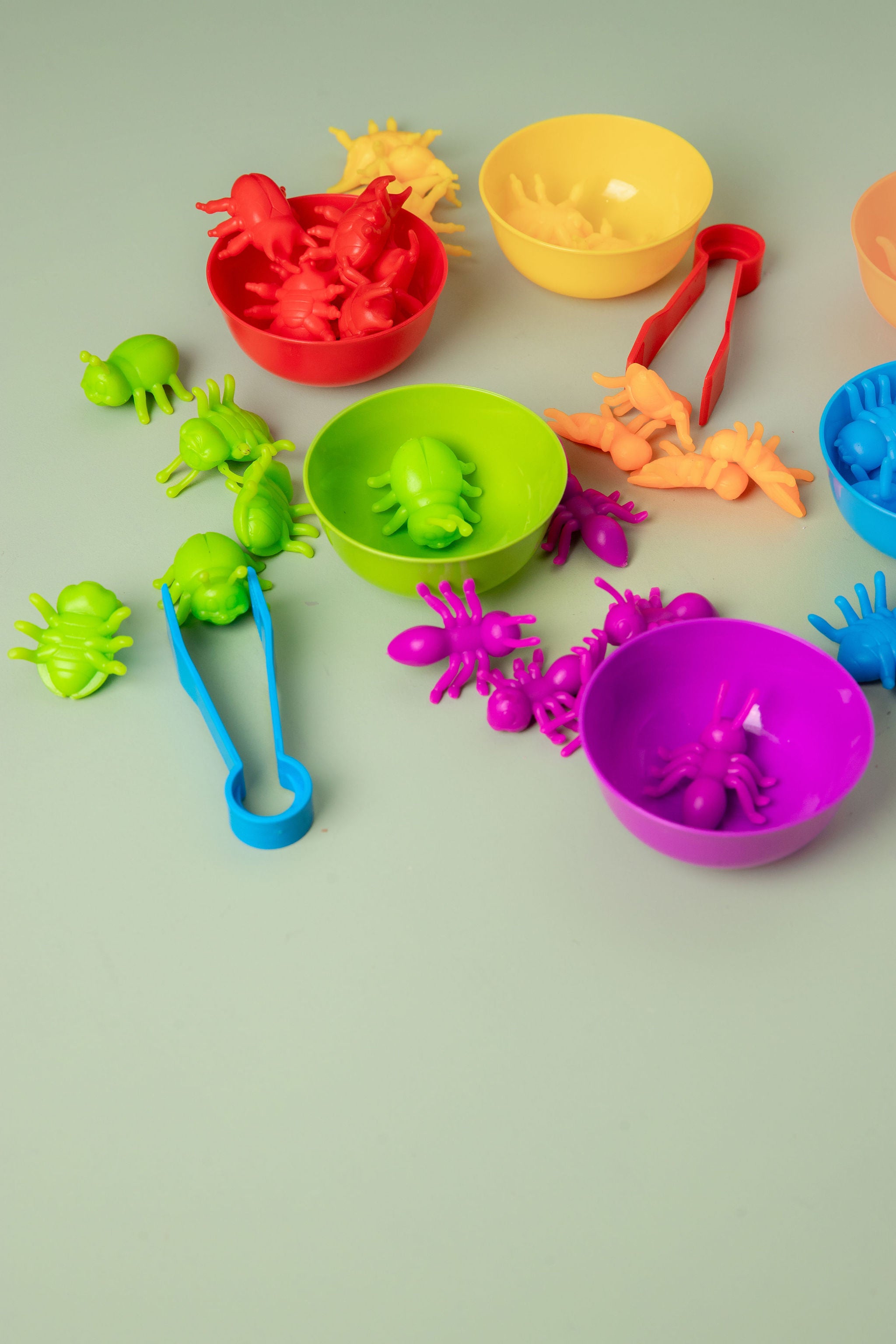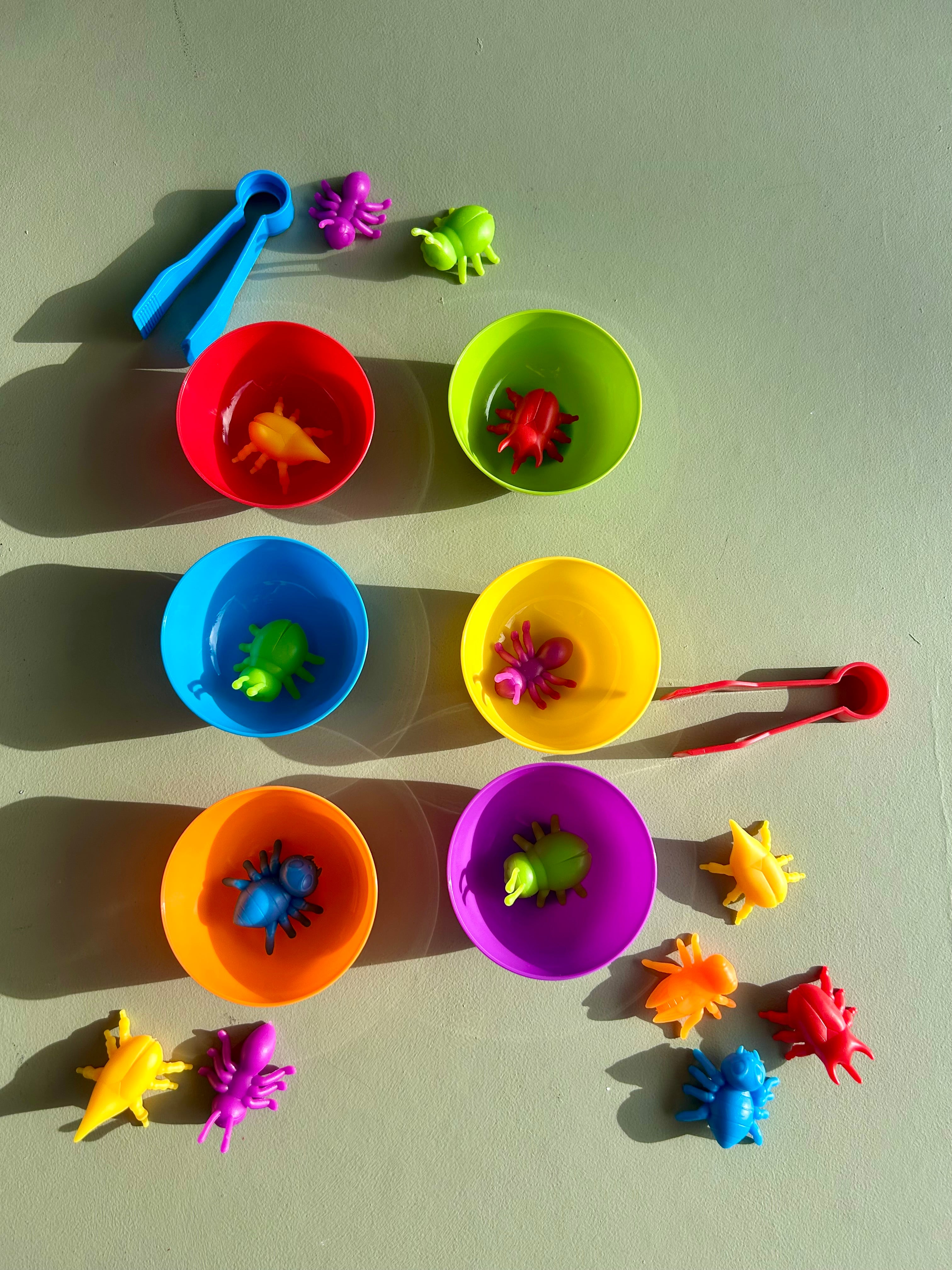 - Bugs Sorting Set (30 counters, 2 tweezers, 6 sorting cups).