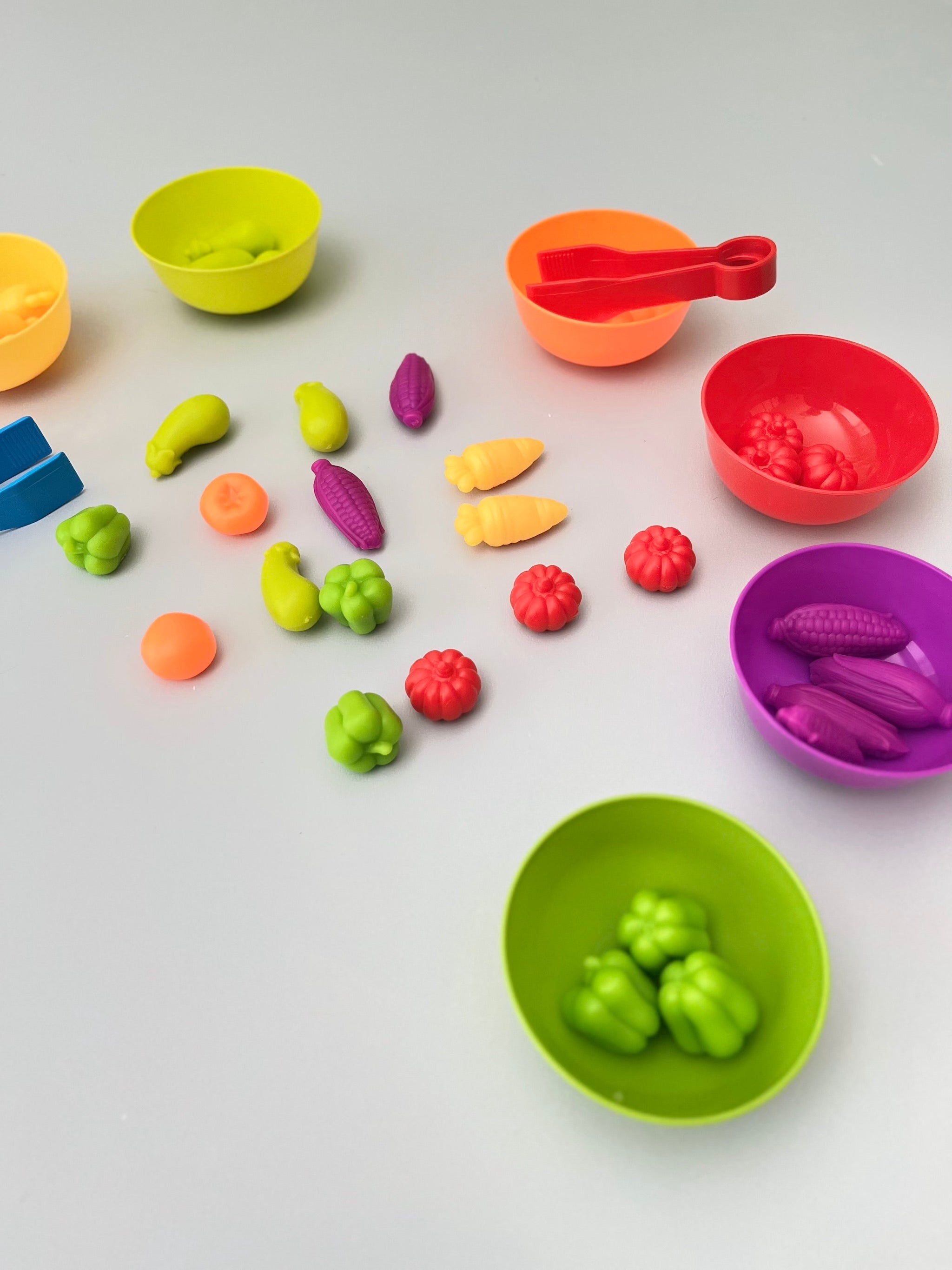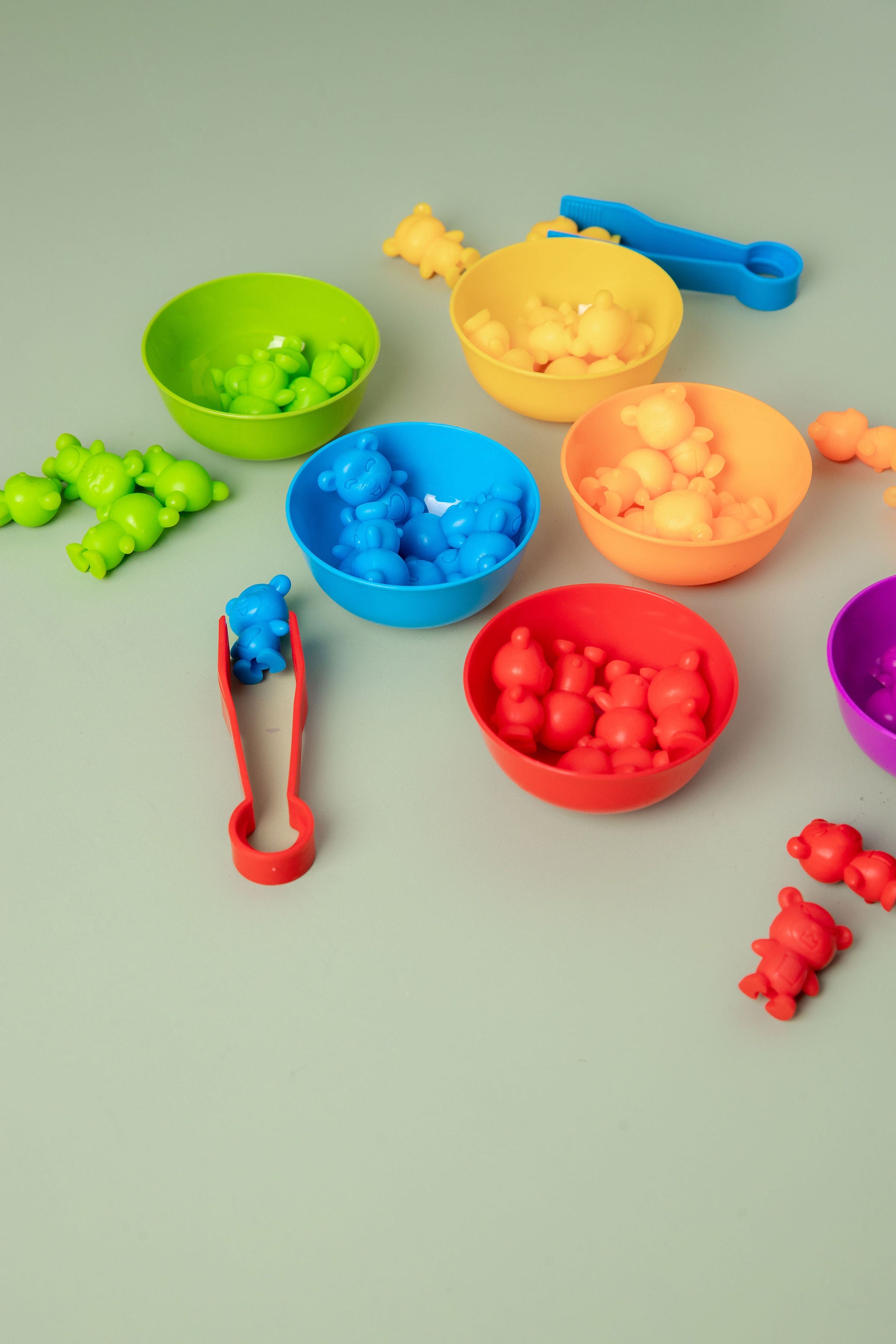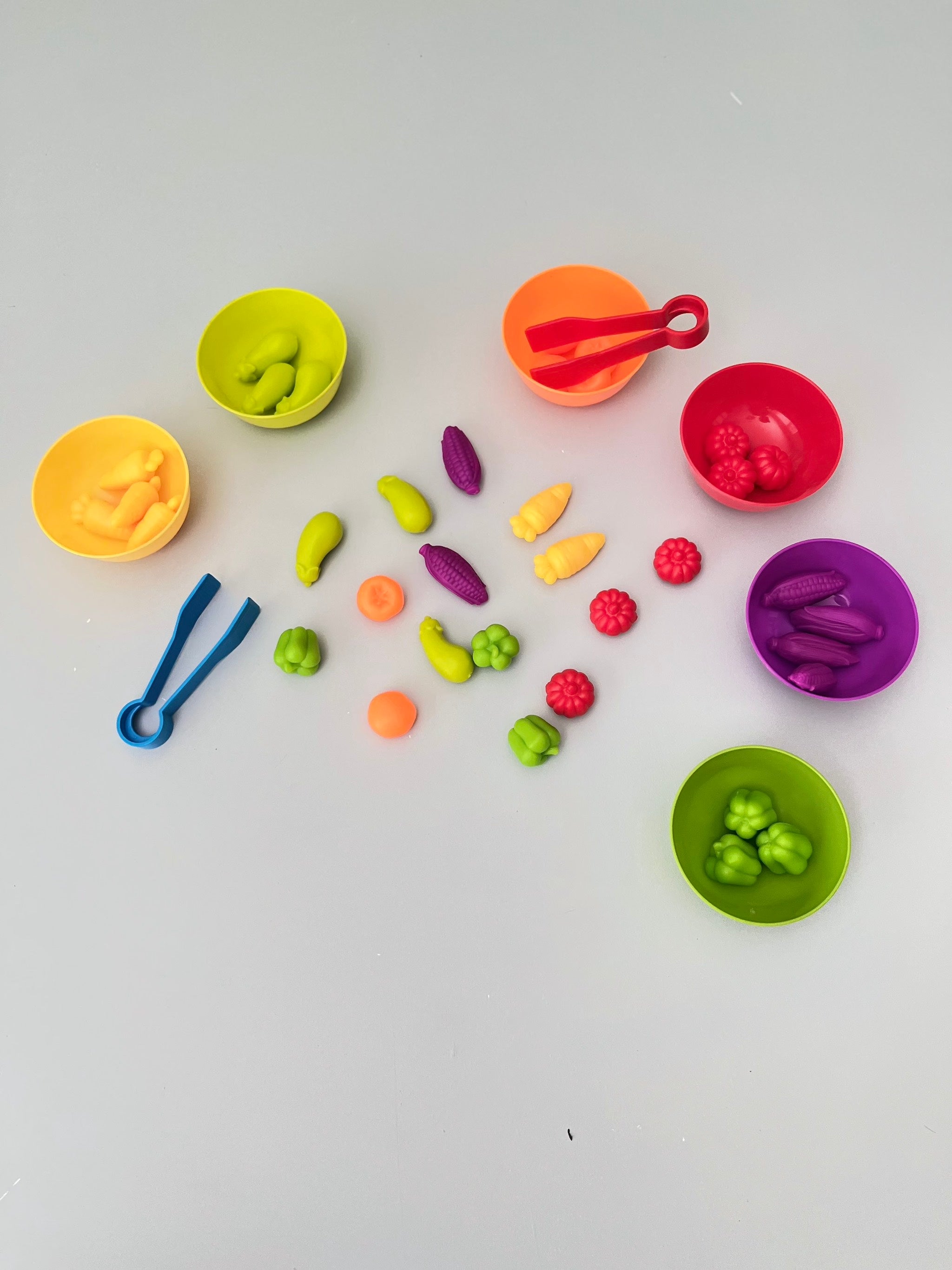 The tweezers are particularly valuable. They require more precision and hand strength than fingers alone, making each transfer a purposeful fine motor challenge. Paired with the colour bowls, they also introduce the concept of matching and categorising, foundational thinking skills for both maths and language.