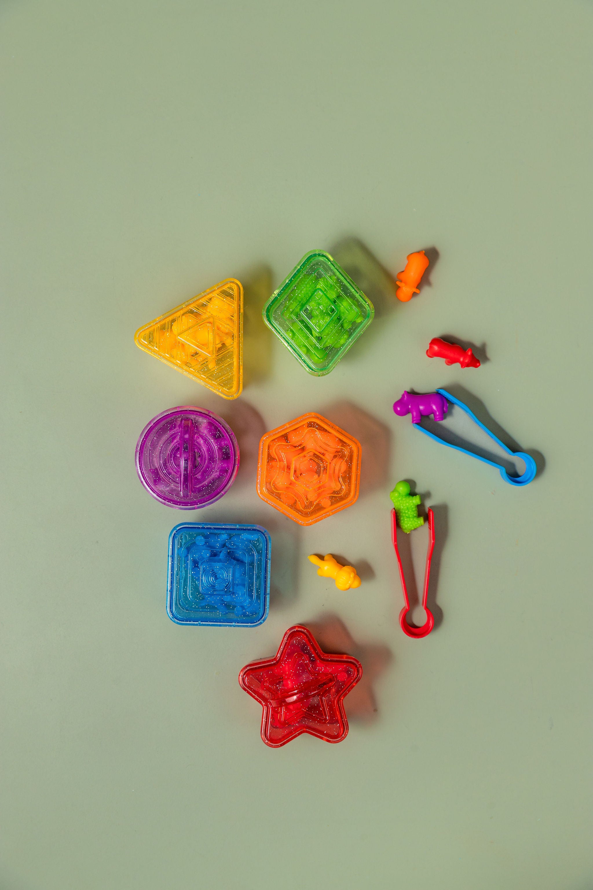 Hide figures in a sensory tray and use tweezers to find and sort them. Use the Alphabet Set to build simple words or match uppercase and lowercase letters.