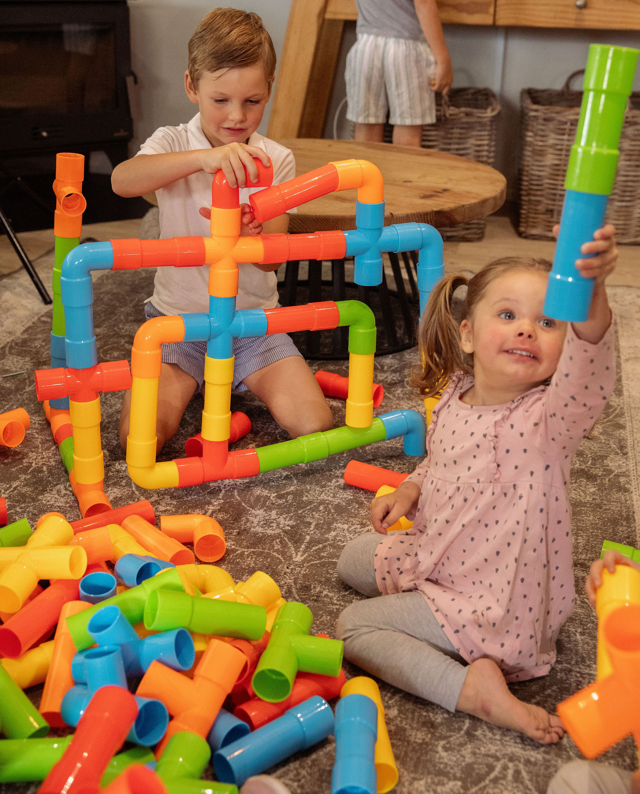 This giant pipe construction set is designed for big ideas and bold builds. With oversized, easy-to-grip pieces, children can create large-scale structures they can play in, around, and through-tunnels, towers, bridges, and imaginative creations that grow with every new connection. The generous size makes it especially accessible for younger children while still offering endless challenges for older builders.