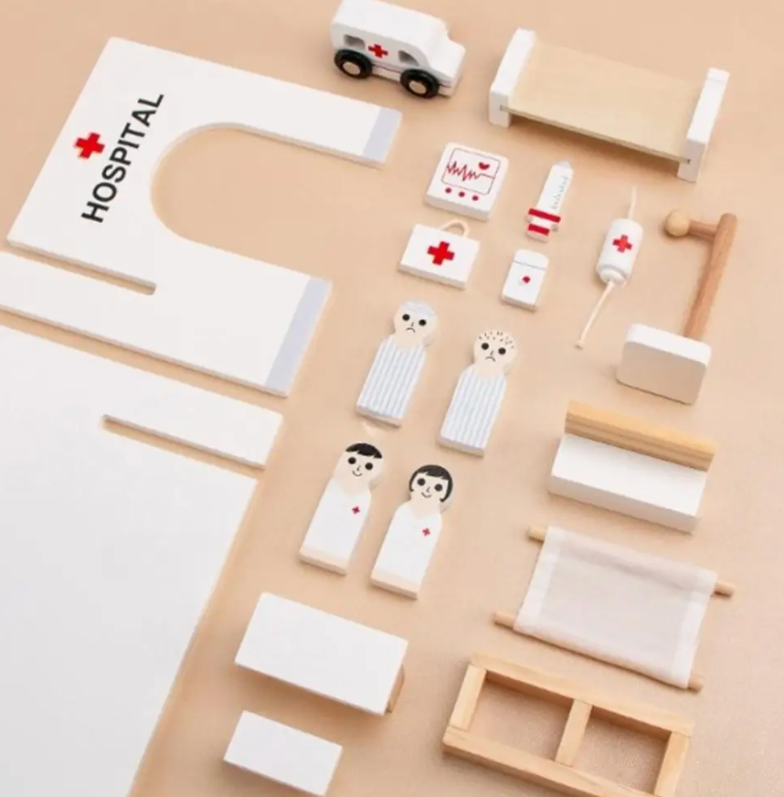 Prepare little ones for real-life experiences through play with this beautifully designed hospital set. Small world play is a gentle, engaging way for children to explore the idea of visiting the hospital, helping them process emotions and build confidence in a safe space. With everything from an ambulance and stretcher to patients and a heart monitor, children can role-play doctor visits, emergencies, or quiet recovery time. Perfect for pretend play, therapy sessions, or simply sparking imagination, this set encourages emotional preparation, empathy, and storytelling through play.