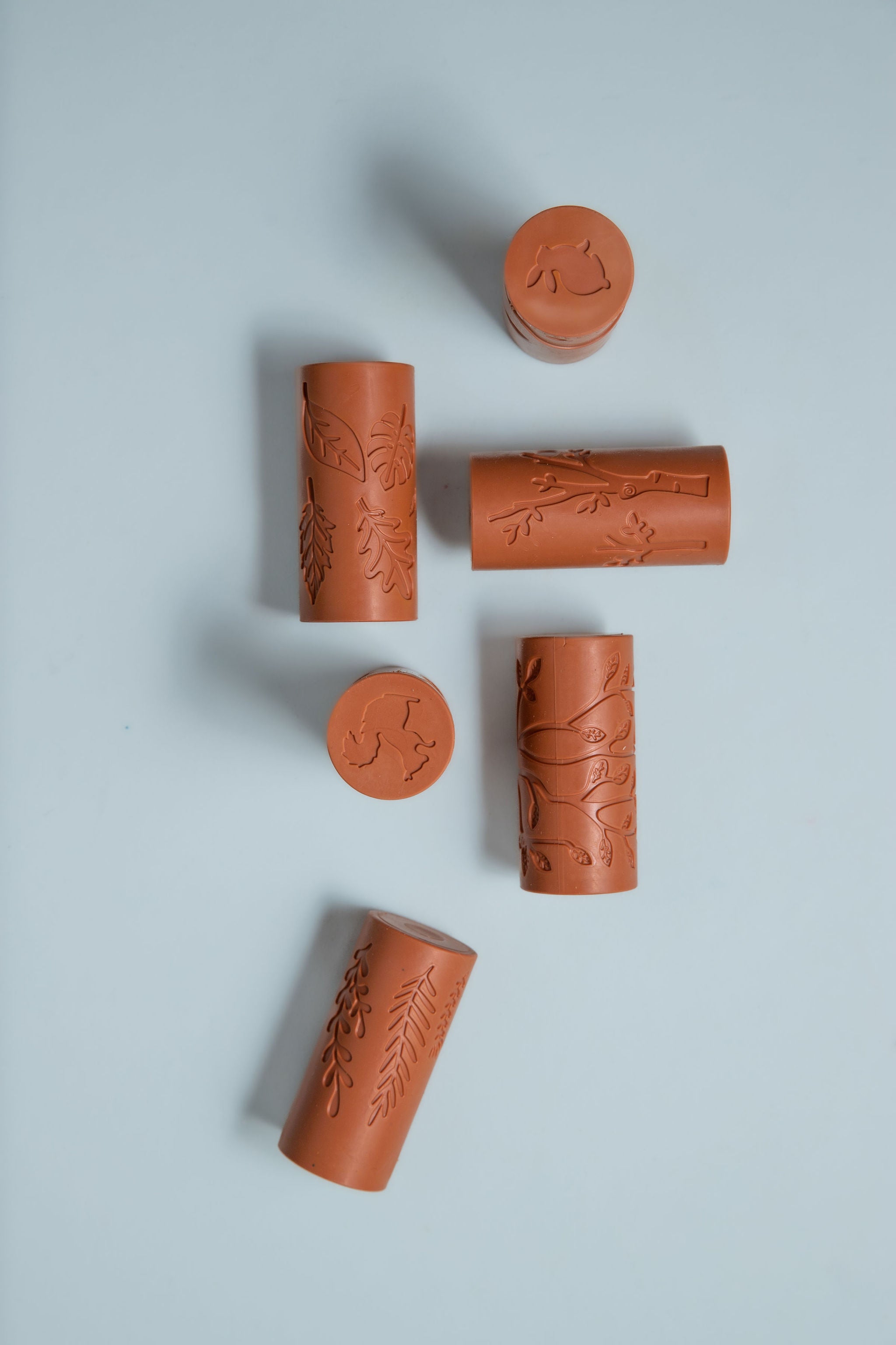 Ready to discover the forest's secret inhabitants? These clever rollers will help you explore the wonders of nature and spark your curiosity and storytelling skills. Just press and roll them into play dough or clay, then use the stamps to create captivating woodland scenes. Count the cute rabbits in their cozy burrows, hide the sneaky squirrel in tree trunks, and watch the spider weave its delicate web.