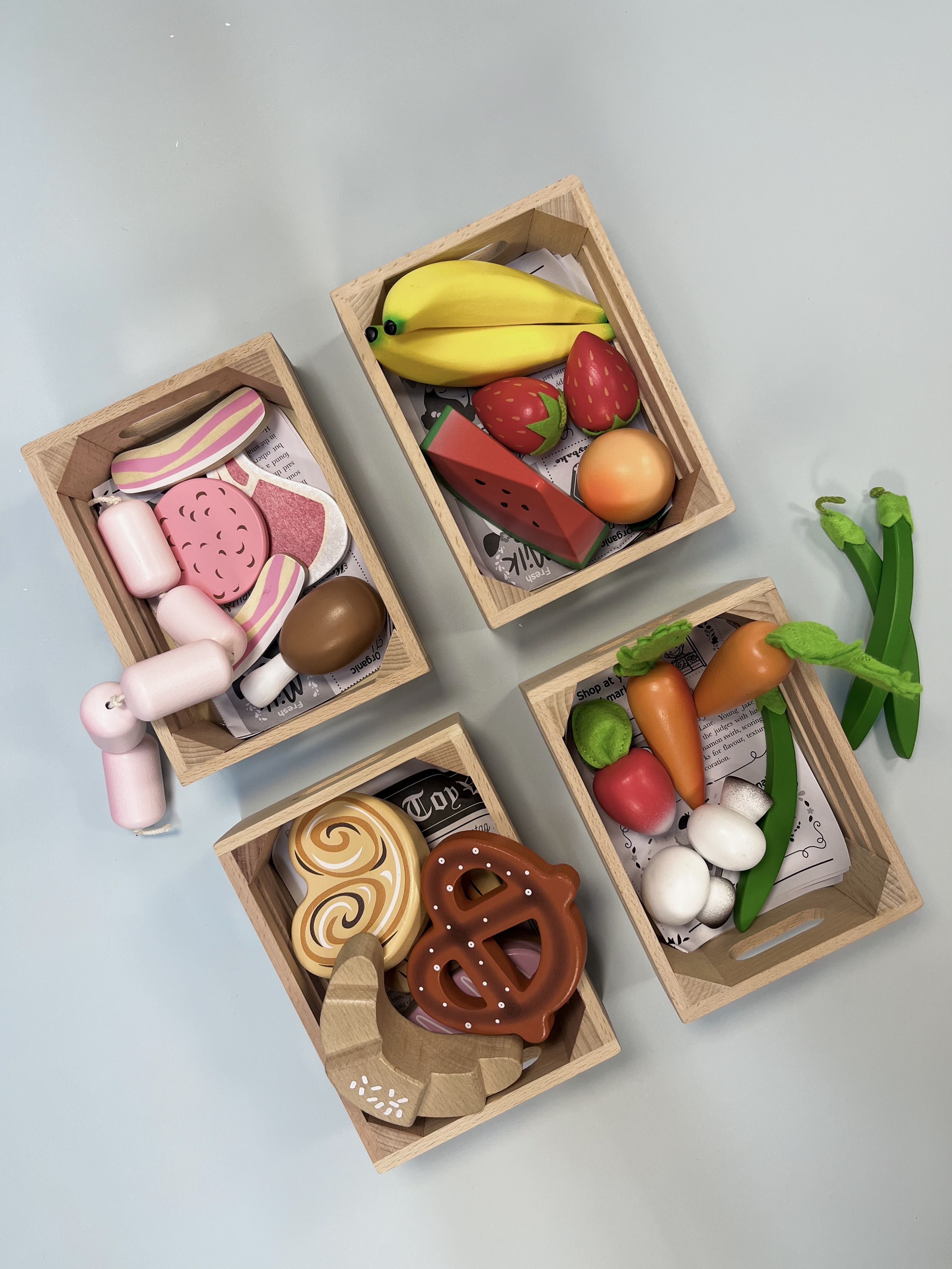 Bursting with wooden play food favourites, all crafted from solid FSC®-certified wood and finished with child-safe, non-toxic, water-based paints. A newspaper-style paper insert adds an extra layer of realism for immersive roleplay fun.