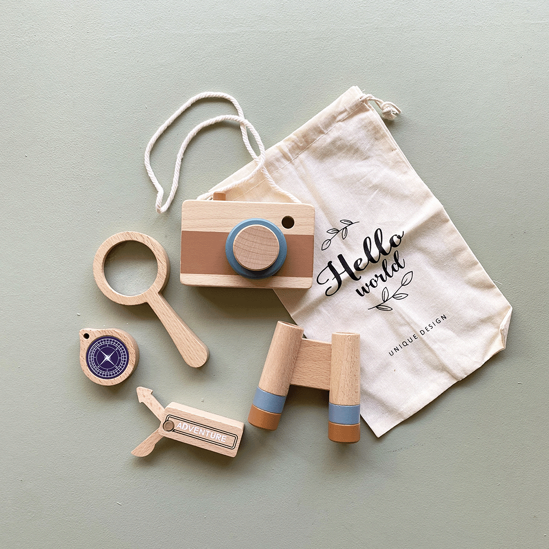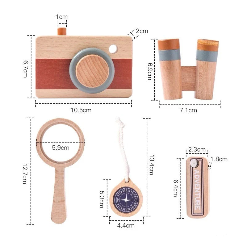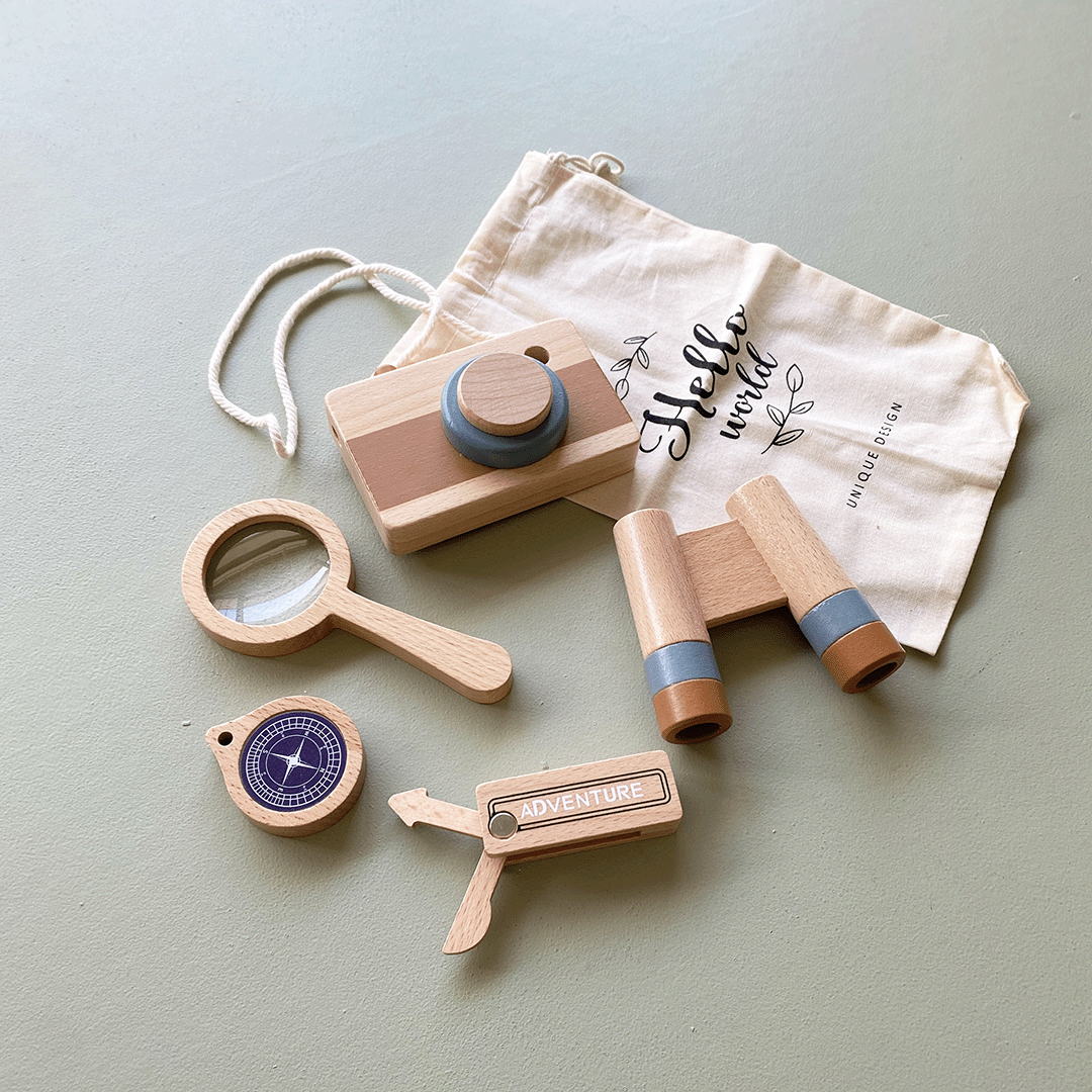 Inspire curiosity and wonder with the Outdoor Adventure Kit, a beautifully crafted set designed to bring little adventurers closer to nature. Made from smooth, sustainable wood with soft, earthy tones, each piece encourages hands-on discovery, observation, and imagination.