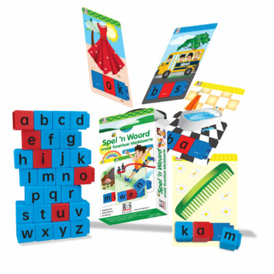 Spel ‘n Woord early reading and spelling kit will help children to recognise letters of the alphabet, letter sounds, consonants and vowels, and the foundations of reading and spelling.
