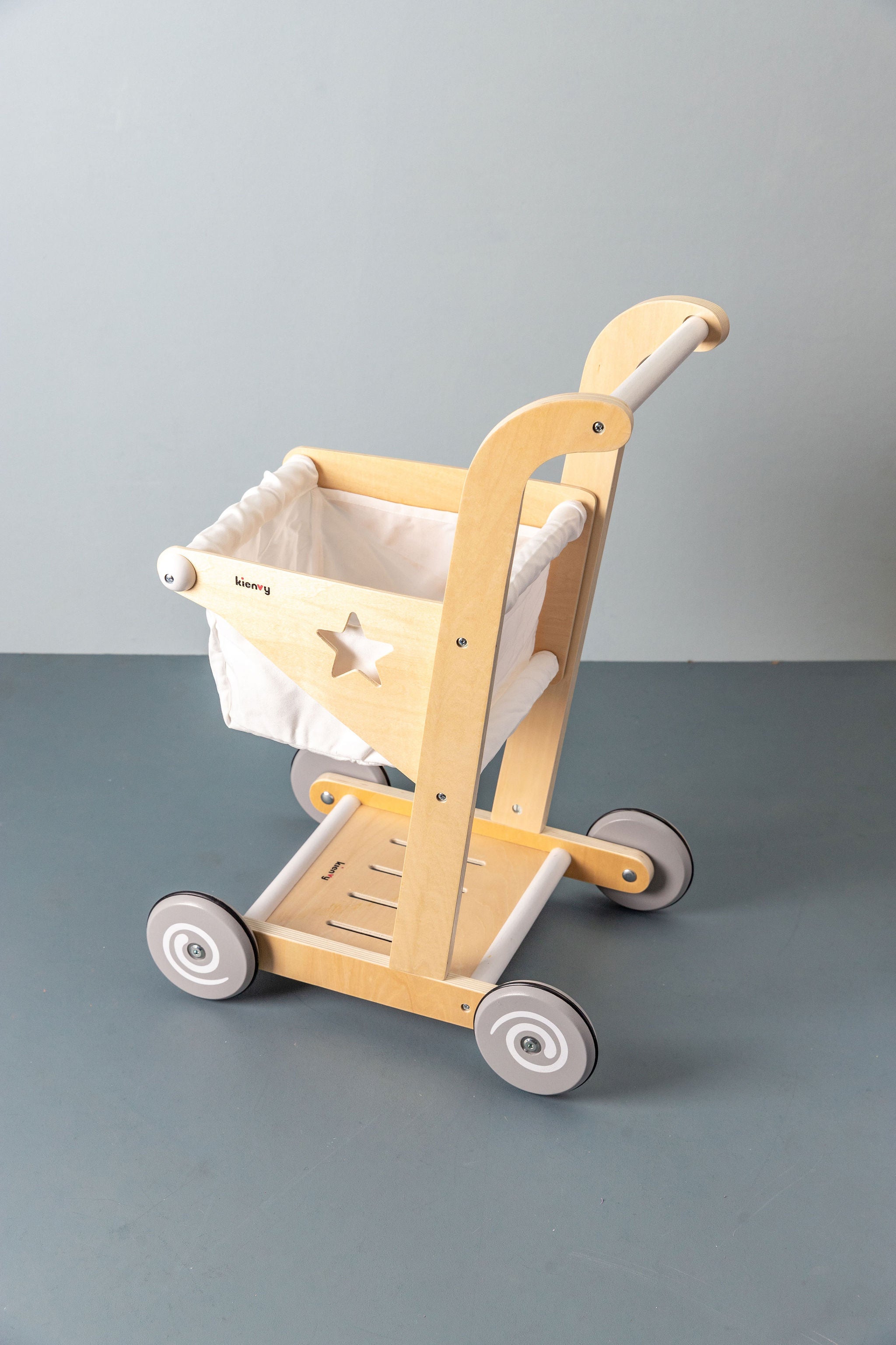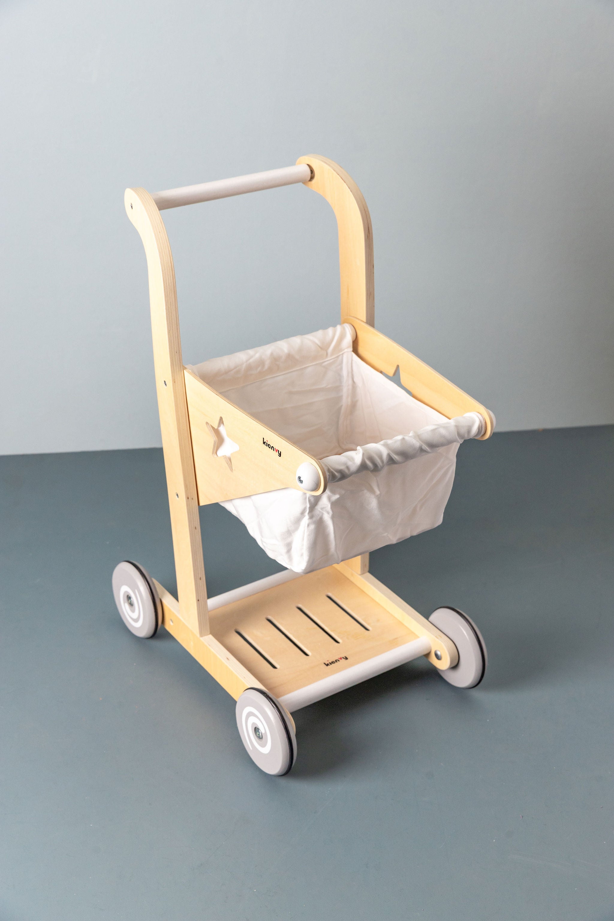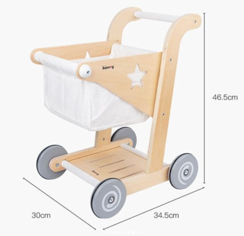 Let’s go shopping! This beautifully designed wooden shopping trolley is perfect for little ones who love to mimic their parents. With its sturdy wooden frame, fabric basket, and clean Scandinavian look, it’s a stylish and practical addition to any pretend play corner. Children will love loading up their goodies, pushing their trolley around, and diving into endless hours of imaginative shopping adventures. Great for role play, social skills, and fine motor development.
